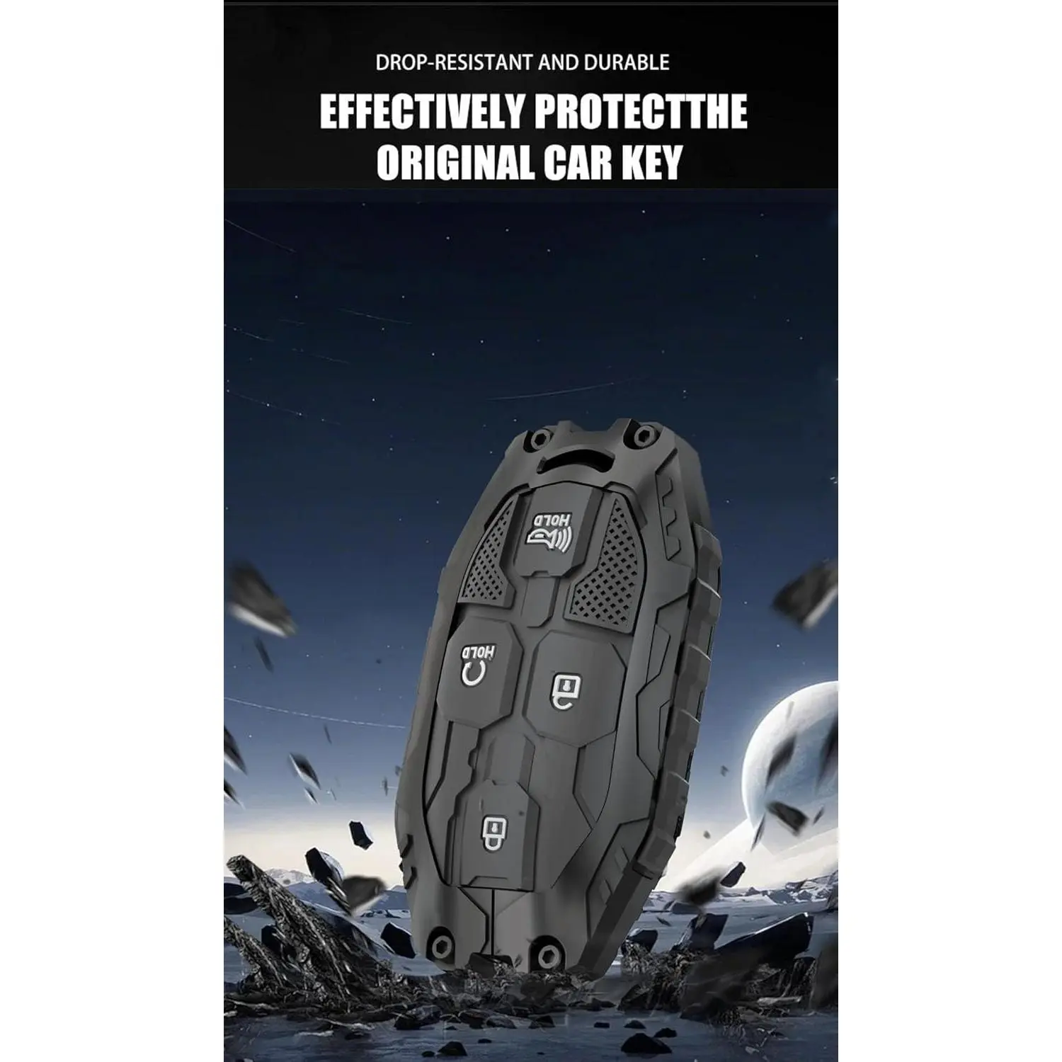 Heavy Zinc Alloy Key fob Case Cover with Keychain Compatible with Hyundai Loniq Elantra Sonata Santa fe Tucson Santa Cruz Palisade Veloster Key Shell Accessories (7 Button Black)