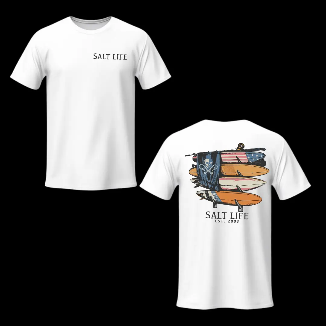 5. Salt Life Surf T-Shirt – Vintage Surfboard Beach Graphic Shirt, Coastal Summer Shirt, Men’s Tops