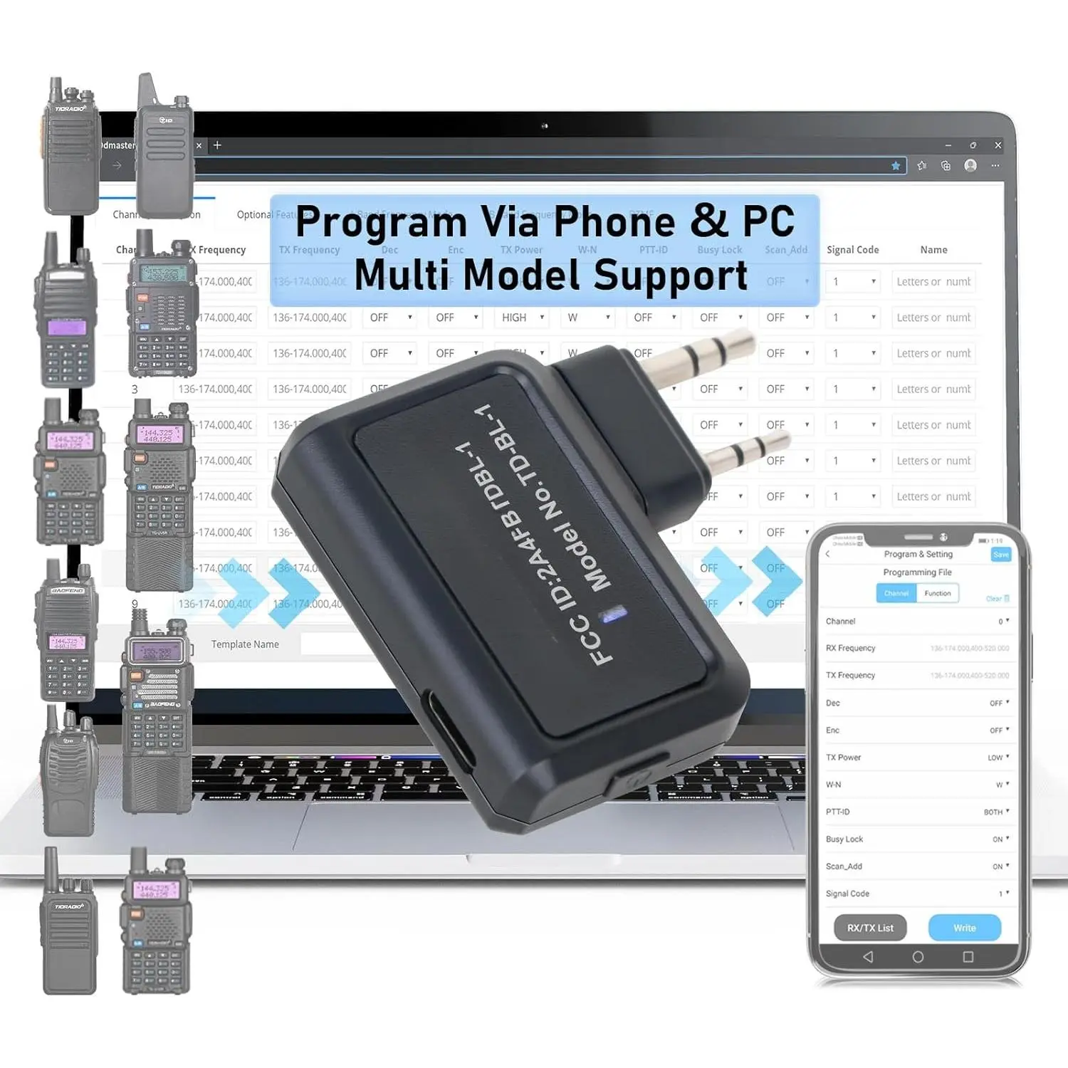 ✔[BIG BOOM]Now with Odmaster, directly connect PC Bluetooth and program radios on Odmaster Web.Supports CHIRP CVS import, no plugins required - just open the web and link programmer.APP & Web share freq data across phones & PCs for easier programming.Program on PC, sync to account, and write to radio via BL-1 on phone when needed.Pre-programmed templates work for the same model, not different ones.(First web login?Enable in APP Settings-Remote Programming-Open.)