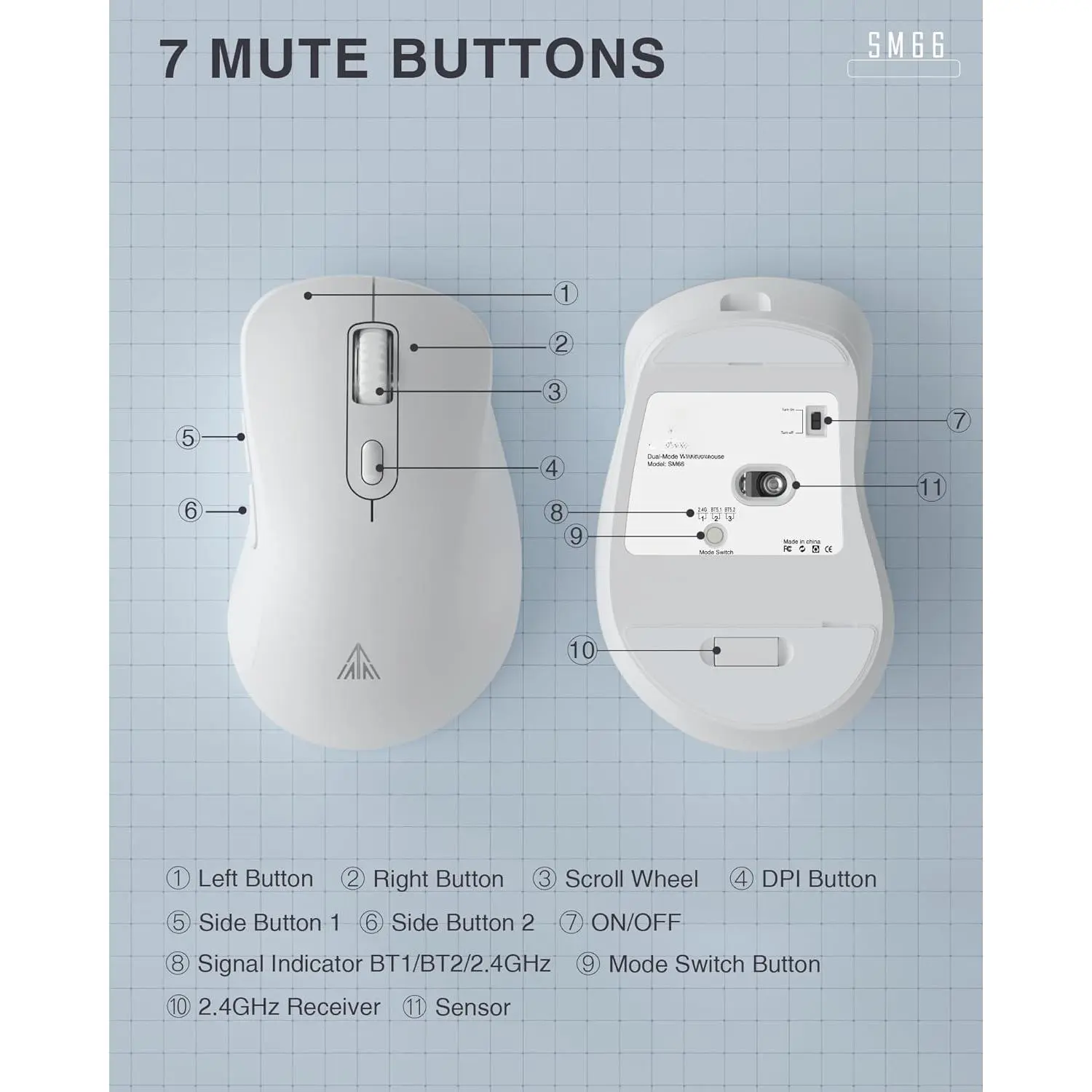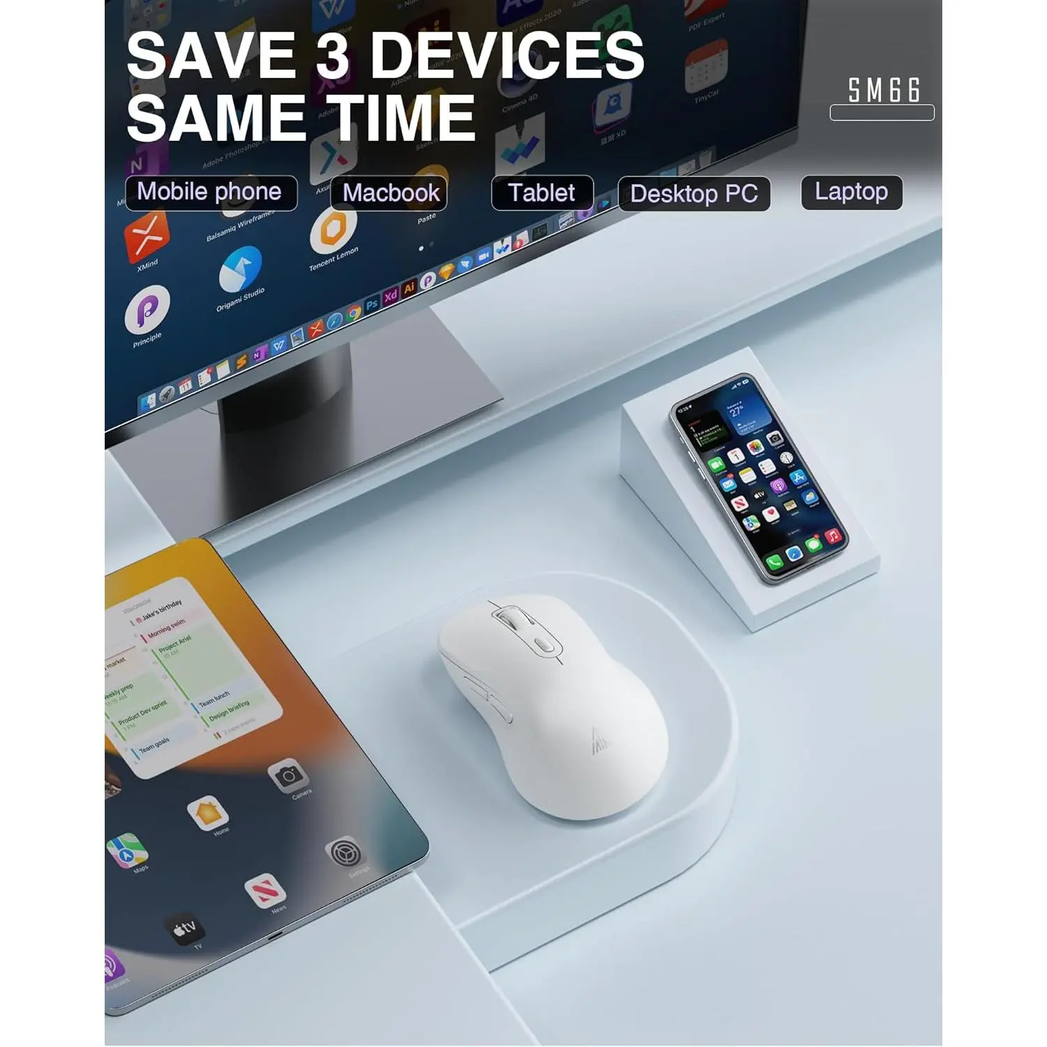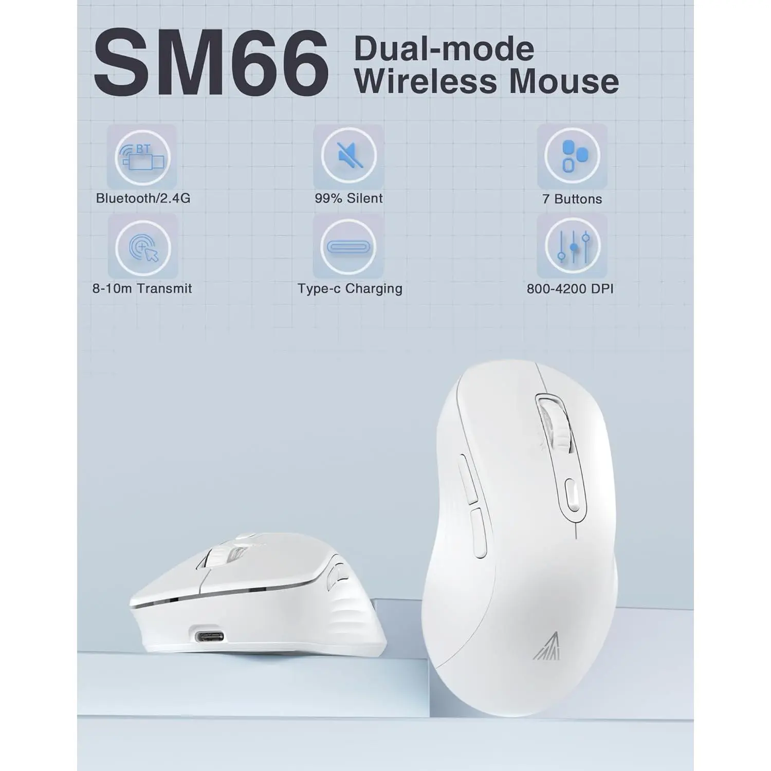 2.4G Wireless Dual-Mode:The SM66 wireless mouse is perfect for multi-functional use,support 2 mode BT and 2.4GHz wireless connection,3 devices save.supports connection for your Laptop,PC,Computer,Xbox,iPad,Mobile Phone.compatible with multiple systems including Windows,OS,Android,IOS,etc