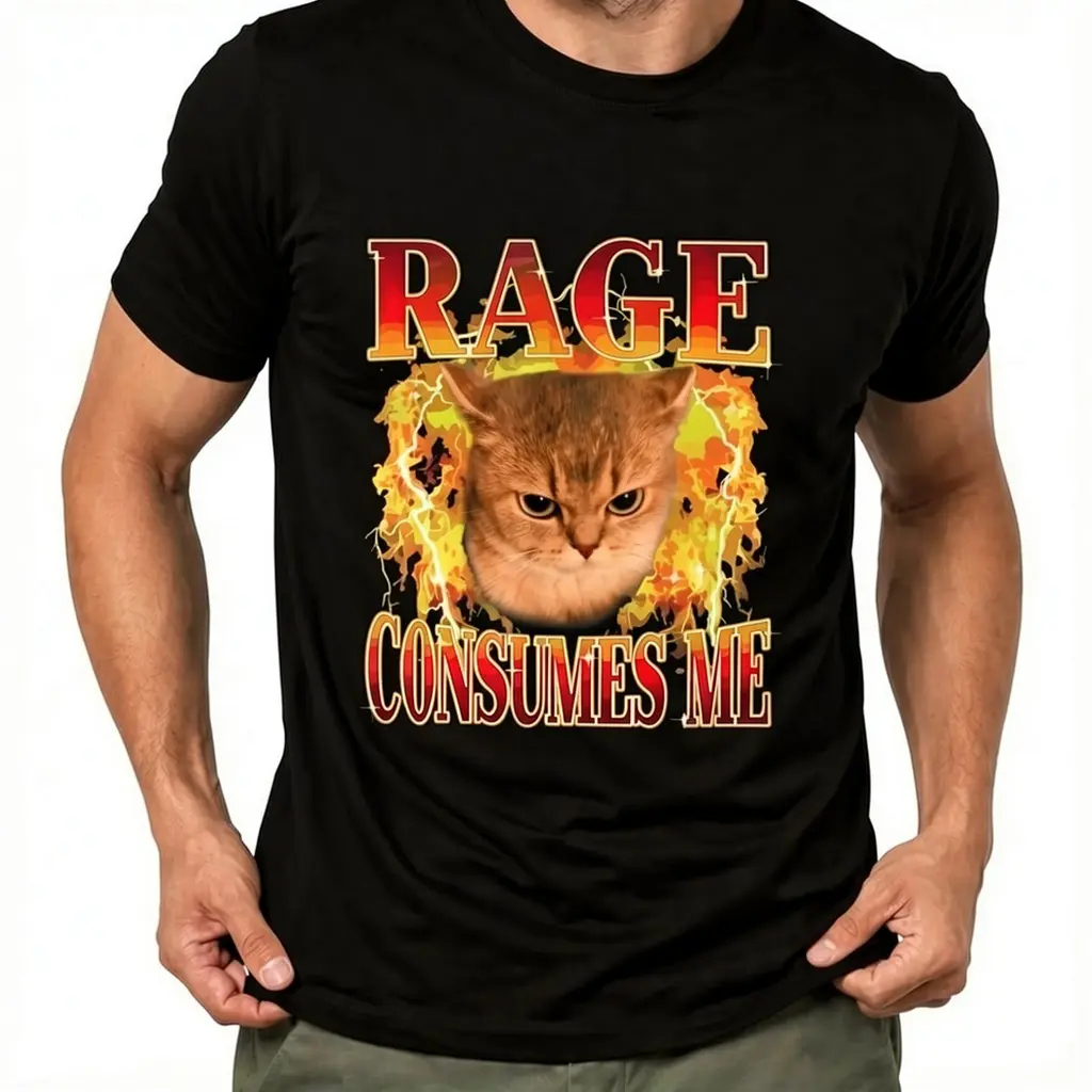 Cat Rage Is Consuming Me Funny Angry Meme Cats Humor T-Shirt
