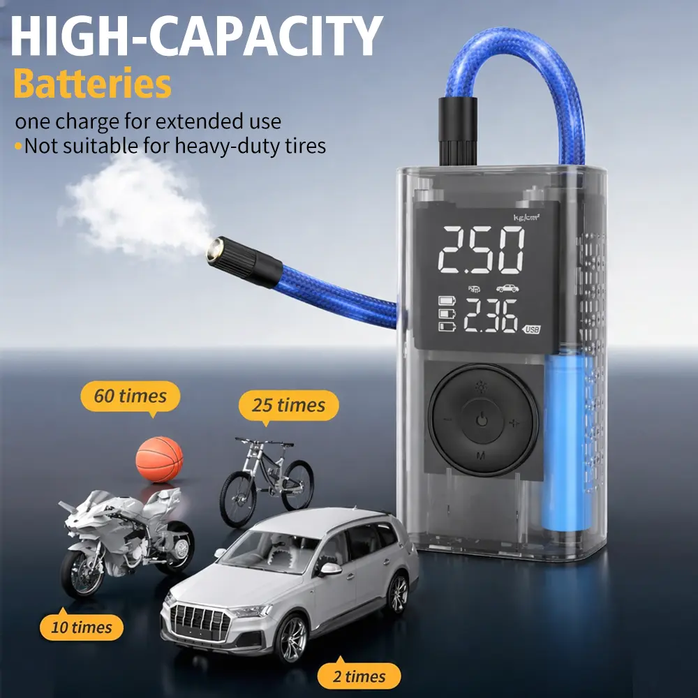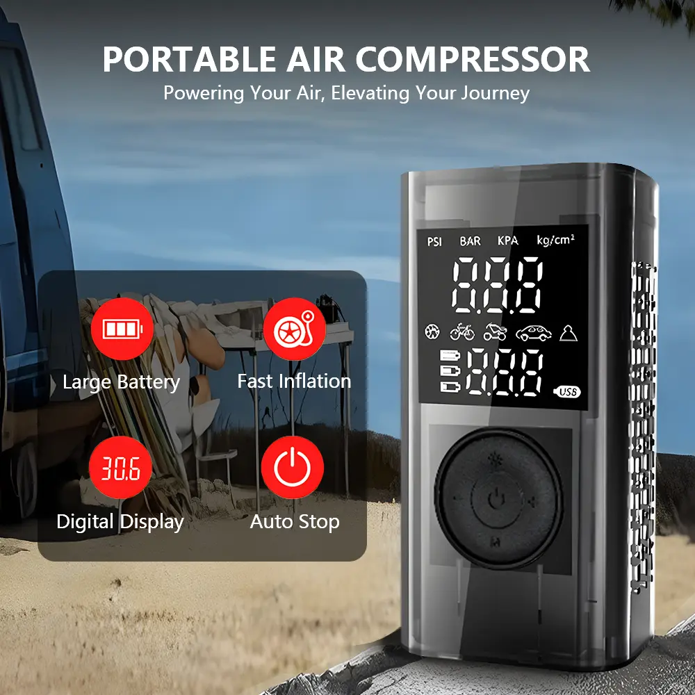 Forget waiting around for roadside assistance! Our high-pressure pump inflates a standard car tire from 0 to 35PSI in just 8 minutes – that’s faster than most gas station air pumps! With 4 preset modes (car, motorcycle, bike, ball) and a digital LED display, you can set your desired pressure and let it auto-stop when done. No more over-inflation guesswork! Perfect for road trips, camping, or daily commutes.