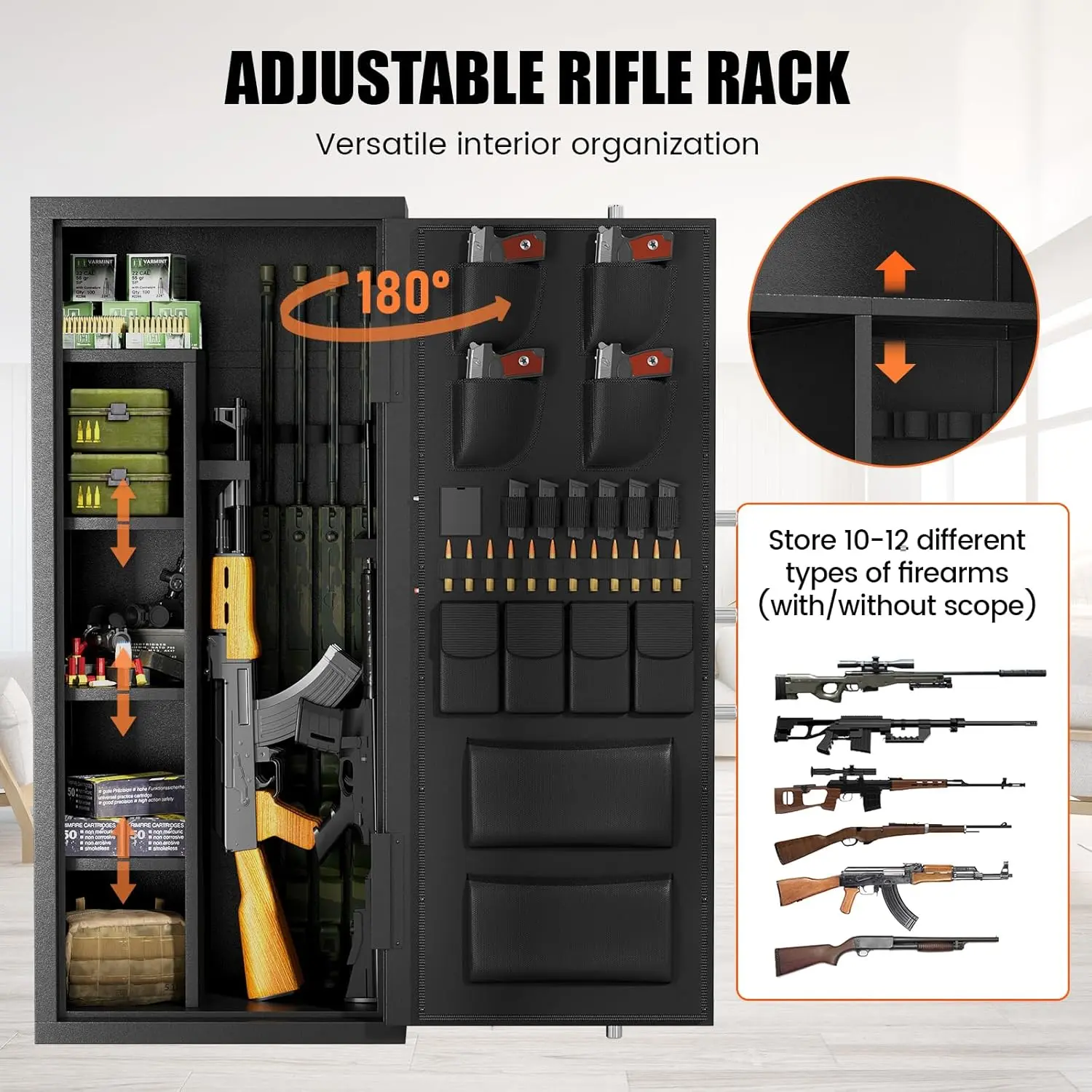 ·📏【Max Storage | Holds 10 Rifles up to 50"】 Deeper interior than rivals—fits 10 rifles/shotguns 50" or shorter without crowding. Three sliding gun rails + an extended top slot let you store longest-barrel firearms intact, freeing space for optics and bipods.