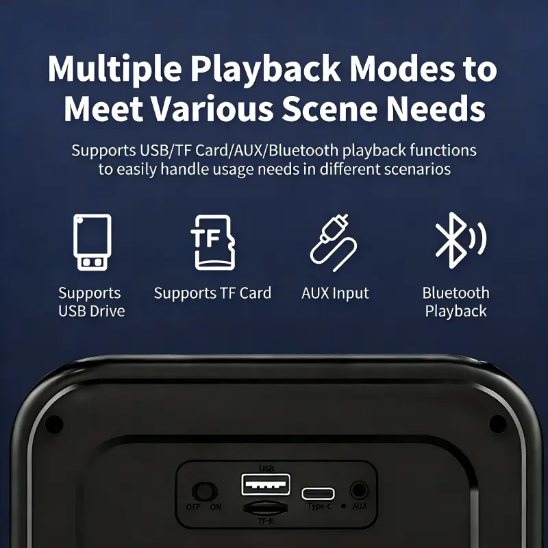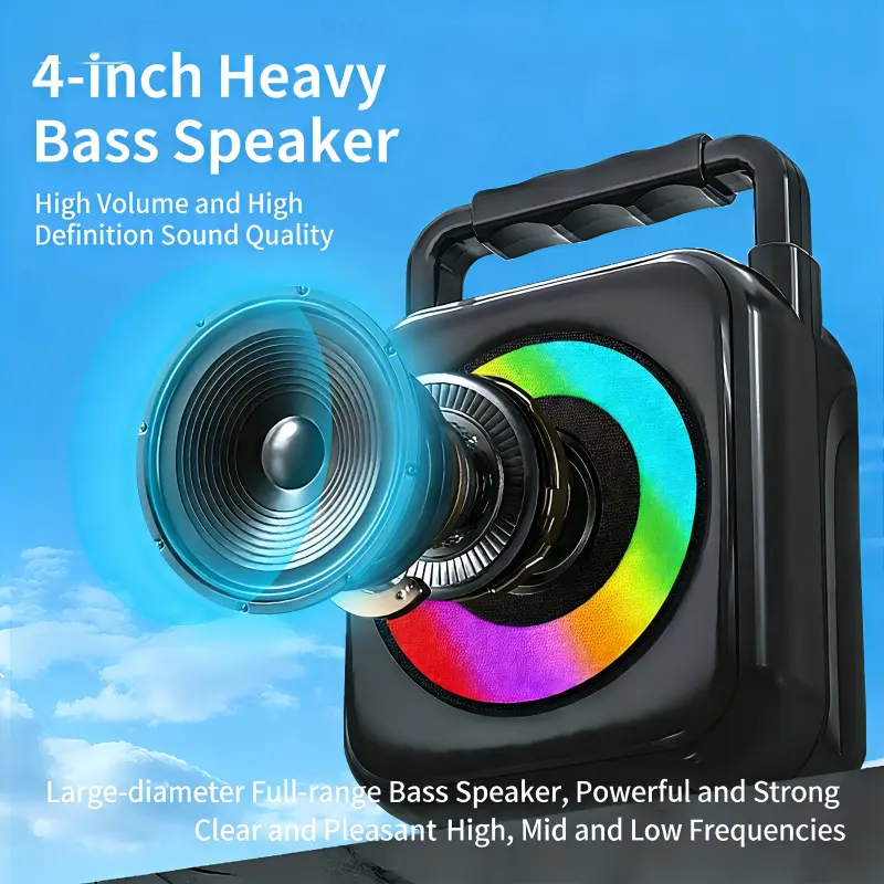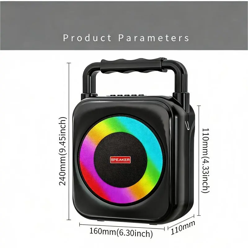 Portable Bluetooth Speaker with Handheld, Built-in LED RGB lights, Supporting USB/TF Card/AUX/BT 5.1 Playback Functions, Boombox for indoor Outdoor Camping Party Music Play