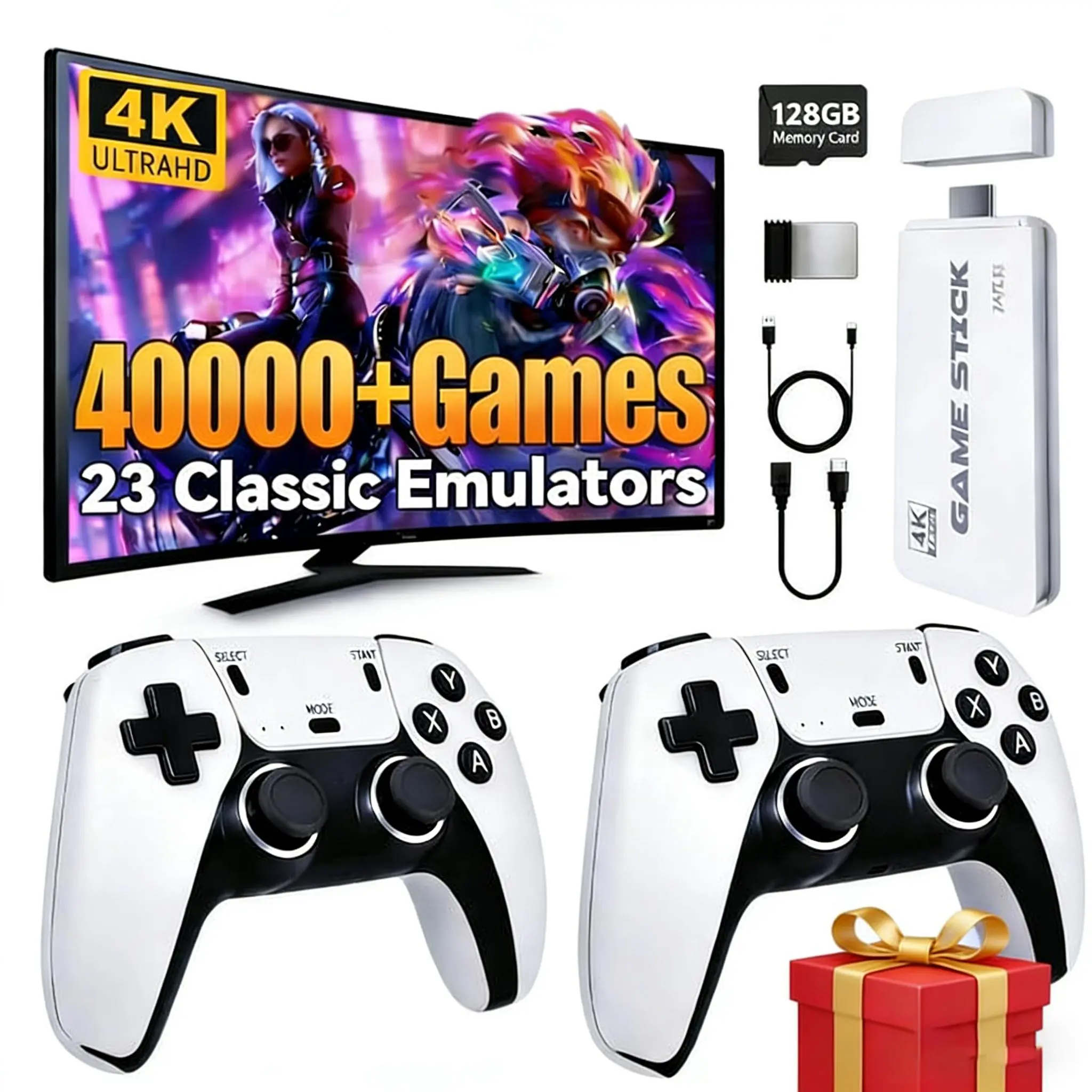 Relive your childhood with our NEW Ultra HD Retro Game Console! Packed with 40,000+ classic games all preloaded, this plug-and-play game stick brings back all your favorite retro titles in stunning Ultra HD quality.