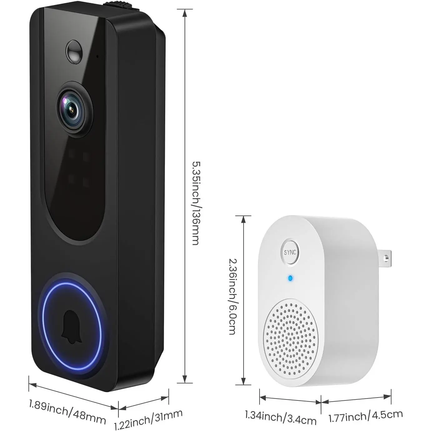 Doorbell Camera Wireless with Indoor Receiver, Battery Powered, AI Human and Motion Detection, 2 Way Talk, 1080P Night Vision, Cloud Storage (Sold Separately)