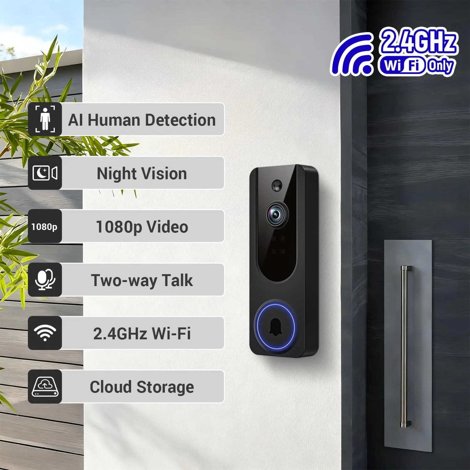 Optimized for 2.4GHz Wi-Fi: This doorbell camera is tailored for 2.4GHz Wi-Fi to ensure a stable and fast connection (5GHz Wi-Fi is not supported).