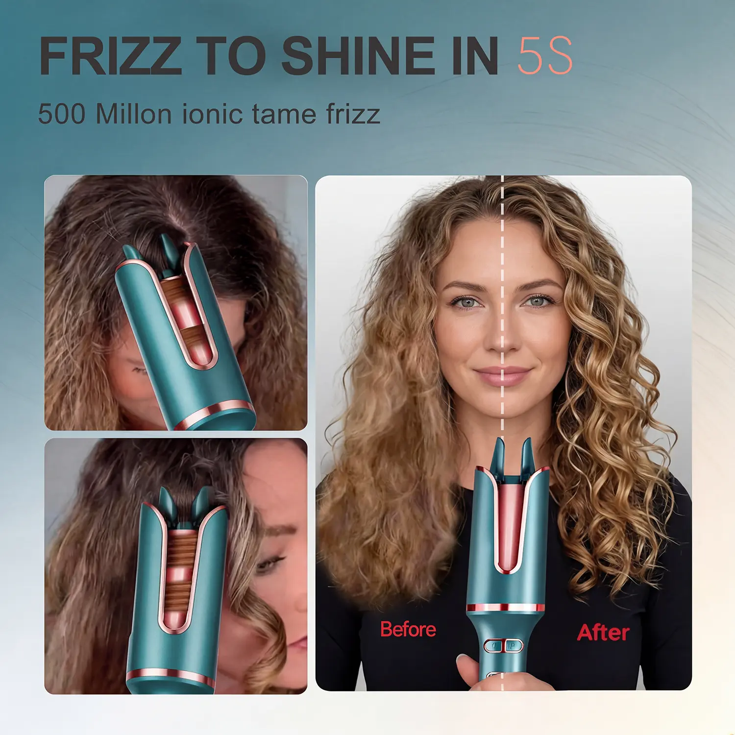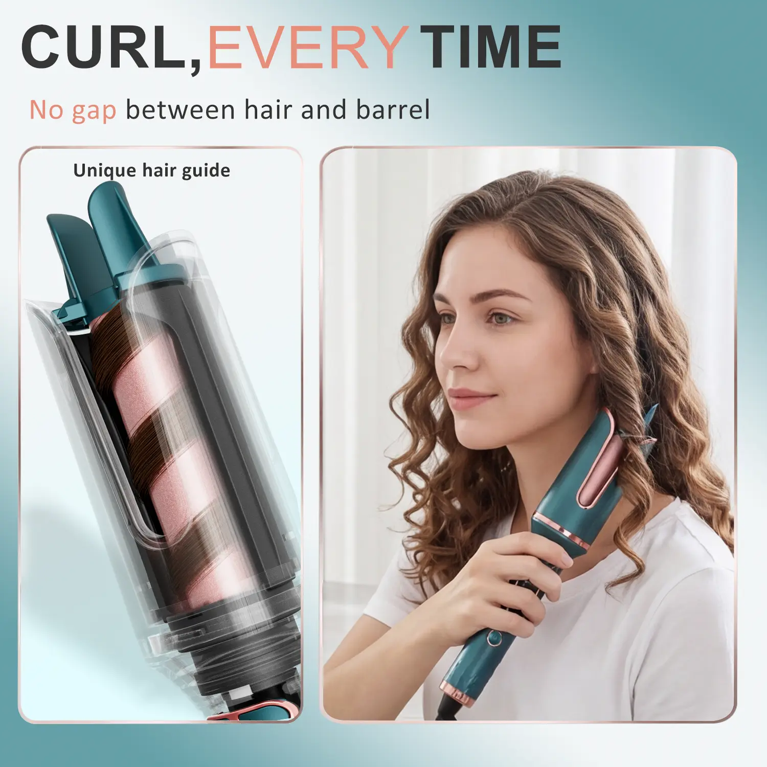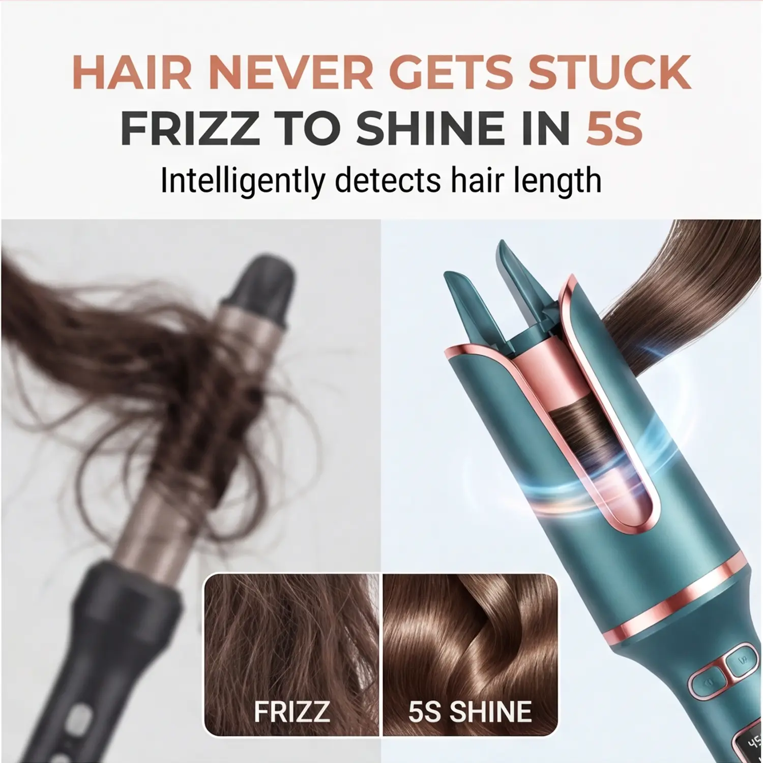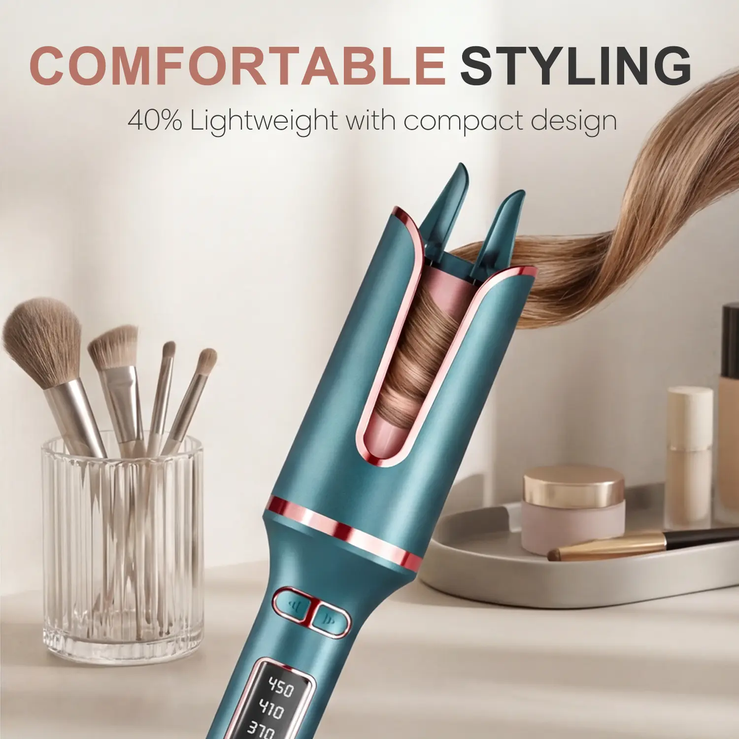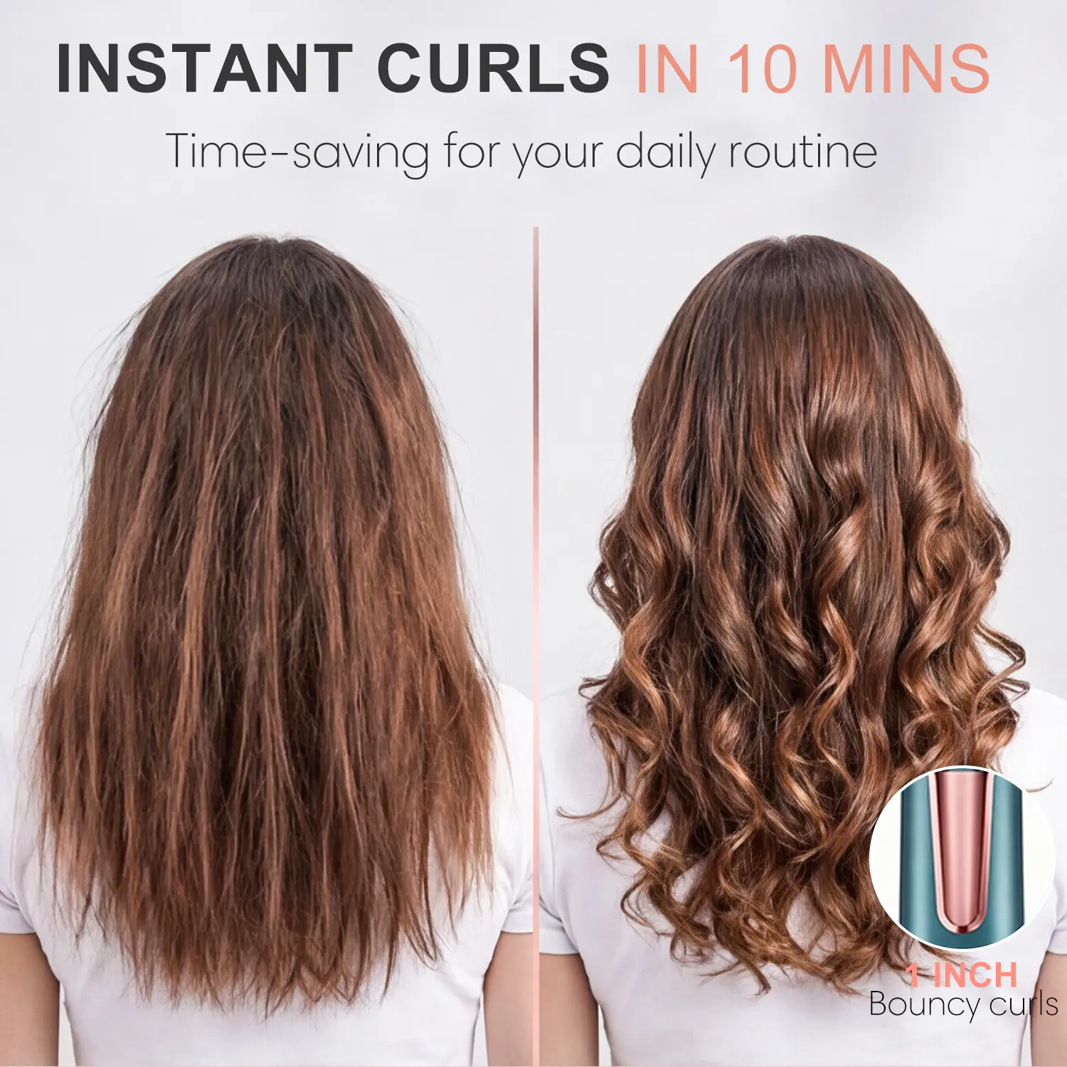 QUICK EASY CURLS FOR BEGINNERS - automatic rotating curling iron features one-click auto-rotation, taking the hassle out of styling and creating consistent beach waves every time. In just 10 minutes, you're ready to go with fabulous curls. Size: 1 inch. NO BURNING RISKS, NO TANGLES - Designed with a cool-to-the-touch 360 anti-scald design, the automatic rotating hair curler is safe for both kids and adults. Its intelligent anti-tangle mechanism detects and promptly reverses tangles, ensuring a smooth styling experience. BOUNCY & LONG-LASTING CURLS - With a T-GLOSS tourmaline ceramic coating, twice as smooth as traditional ceramic, and 500 million negative ions, the 1 inch curling iron creates gorgeous waves lasting 72 hours, providing luscious shine and incredible smoothness. PRO INTENSE IONIC: Unlock vibrant shine and feather-soft hair, enveloped by the tender embrace of 500 million negative ions. Reducing moisture loss, leaving your hair gleaming with newfound radiance and silkiness. CURL, EVERY TIME: unique 0.3 inch slot and hair guide make sure the hair is close to the barrel but never tangle, achieve consistent curls every time. Say goodbye to messy curls.