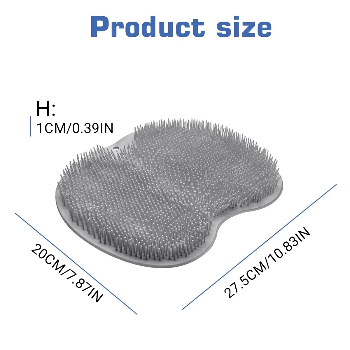 **Deep Clean and Relaxation**: Not only does our scrubber thoroughly clean your feet, but it also provides a relaxing and soothing back massage, effectively easing away fatigue. With dimensions of 25x30cm (9.8x11.8 inches) and a broad brush surface, it ensures a deep clean, even reaching those hard-to-reach spaces between your toes. **Quick and Simple Maintenance**: Our product offers a superior cleaning experience compared to fiber towels, shower brushes, and sponges. It's incredibly easy to rinse and dry, requiring only a quick rinse to prepare it for the next use. This simplicity minimizes dampness and the potential for mildew growth. **Foot Massager Feature**: Place our foot scrubber in the shower for an invigorating massage that targets tired and achy feet. It's designed to stimulate all your pressure points, and its adjustable feature allows for a personalized massage experience, from gentle to vigorous. **Secure Suction and Storage**: Equipped with secure suction cups on the back, our shower scrubber stays firmly in place on the floor, reducing the risk of slipping. After use, it features a convenient hanging hole for easy storage and drying, saving space in your bathroom. **Effortless Foot Hygiene**: Saying goodbye to the struggle of foot cleaning, our shower scrubber allows for effortless hygiene. Simply move the brush across your feet, and watch as they become clean without the need for bending or balancing in uncomfortable positions.