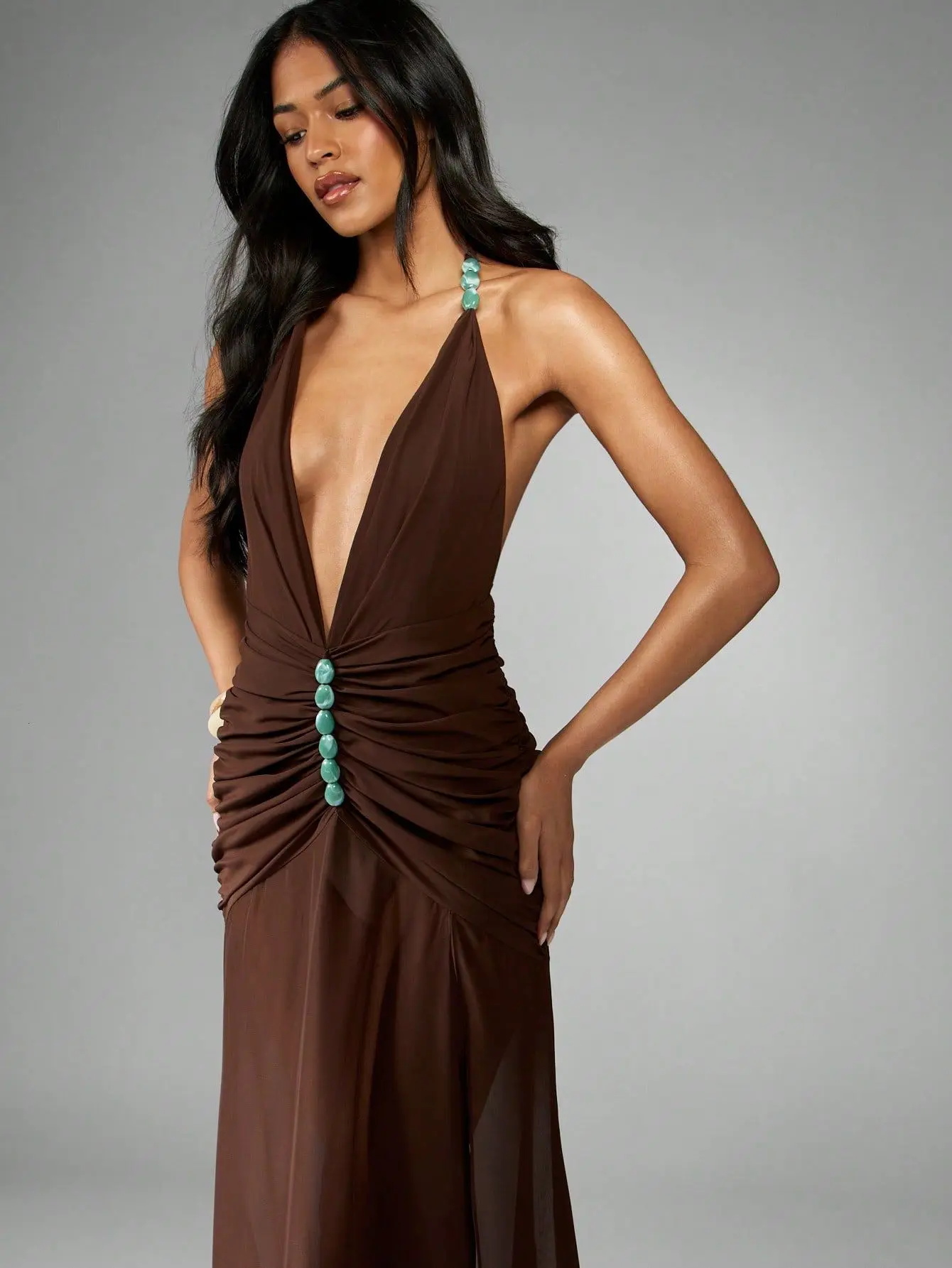 MISSGUIDED Ruched Chiffon Stone Detail Maxi Dress