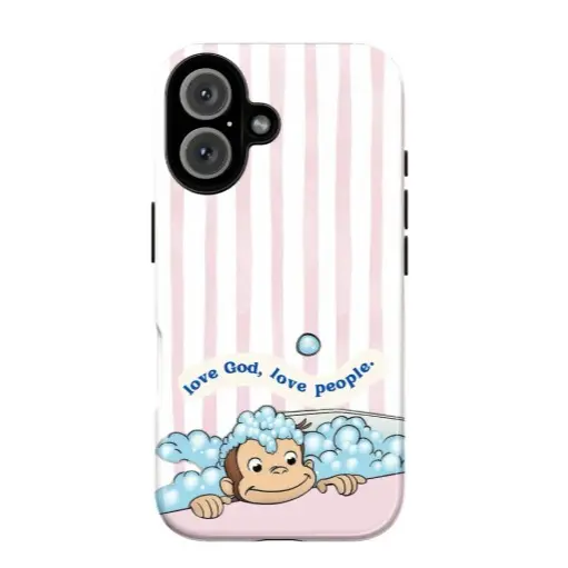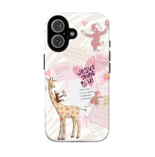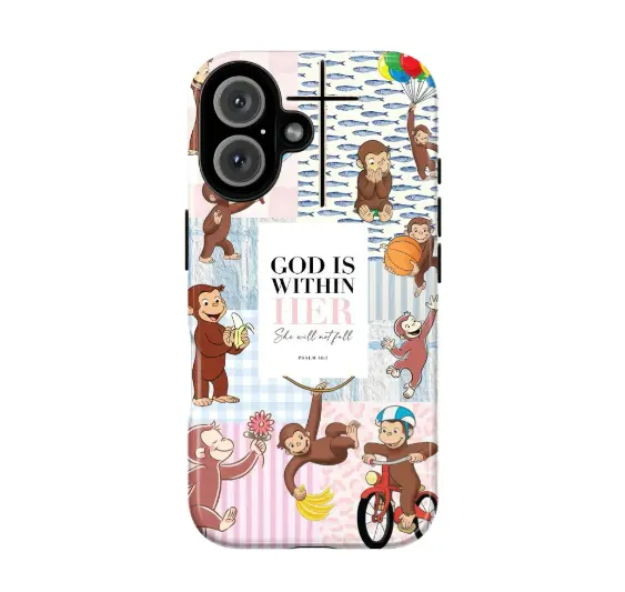Cute Cartoon Monkey Christian Scripture Tough Phone Case, Pastel Inspirational Bible Verse Phone Cover, Curious Georgee Protective Cover, Gift for Fans,phone Case Suitable for Iphone 11/12/13/14/15/16/17 Pro Promax Plus Air