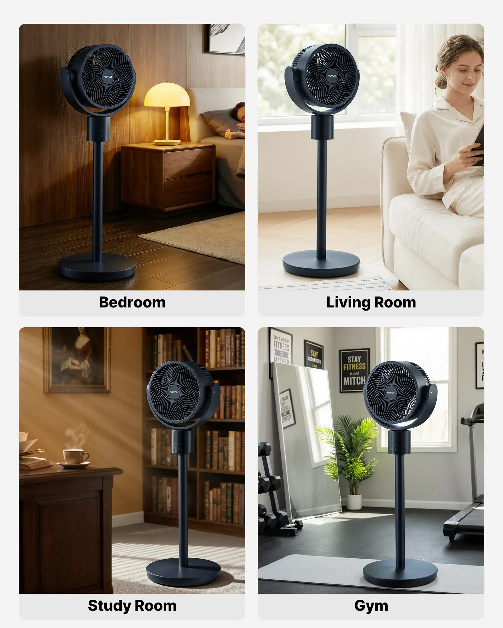 Cooling on Demand: Our bedroom fan is easy to move and delivers instant cooling whenever you need it. It is ideal for patios, living rooms, bedrooms, home offices, or any space that needs a quick, refreshing airflow