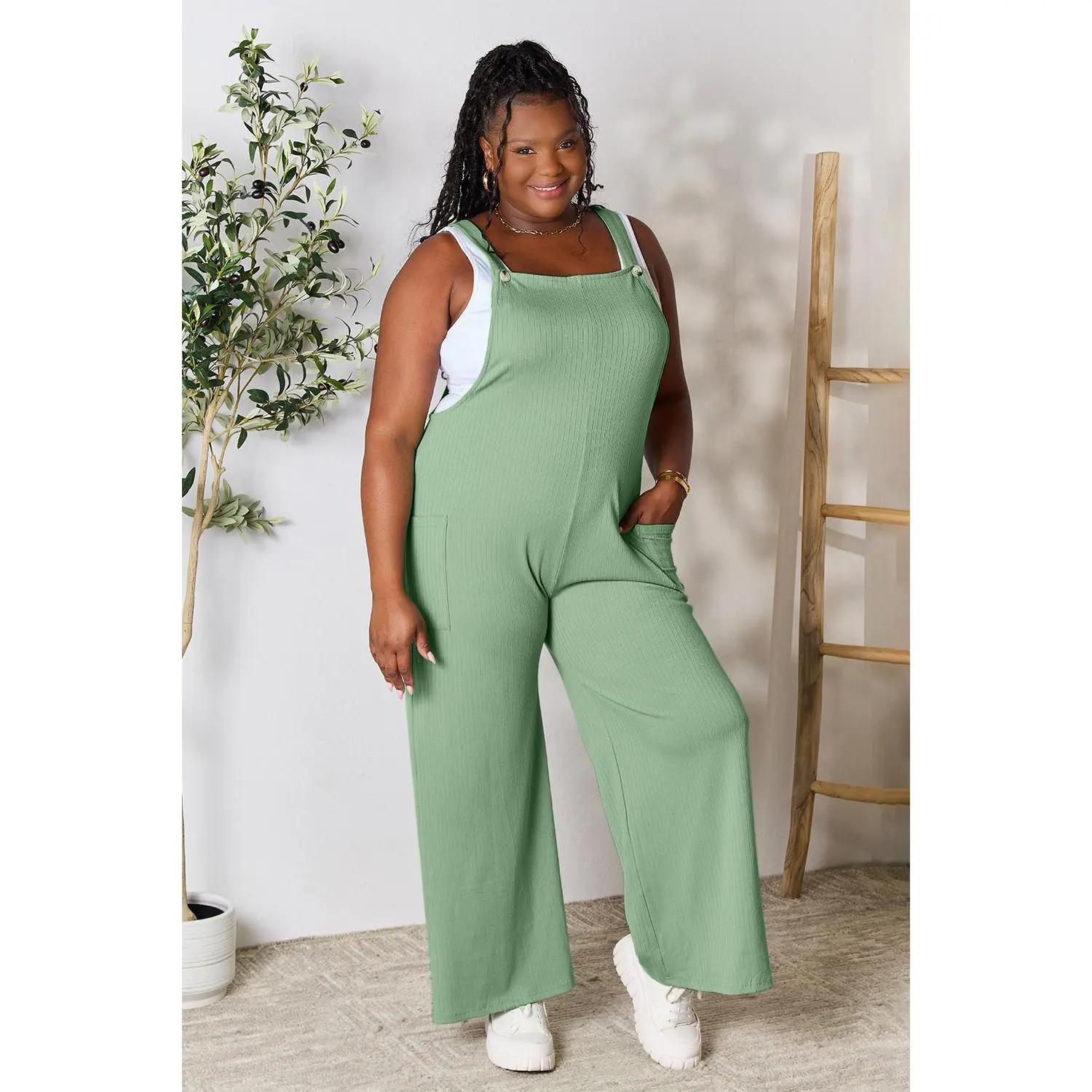 Double Take Full Size Wide Strap Overall with Pockets