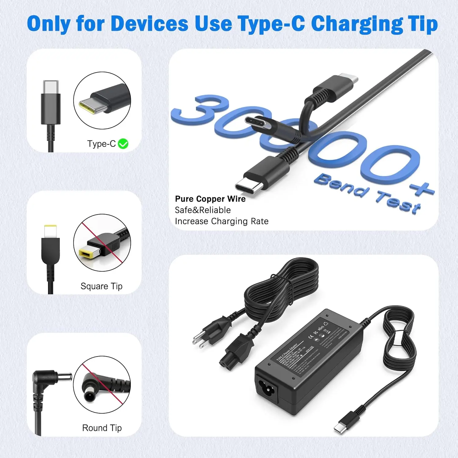 USB C Laptop charger Compatible with ThinkPad T470 T470s T480 T480s T490 T495 T590, X270 X380 X390 X395 X1 Carbon 5th 6th 7th Generation,L390 L480 L490 L580 L590