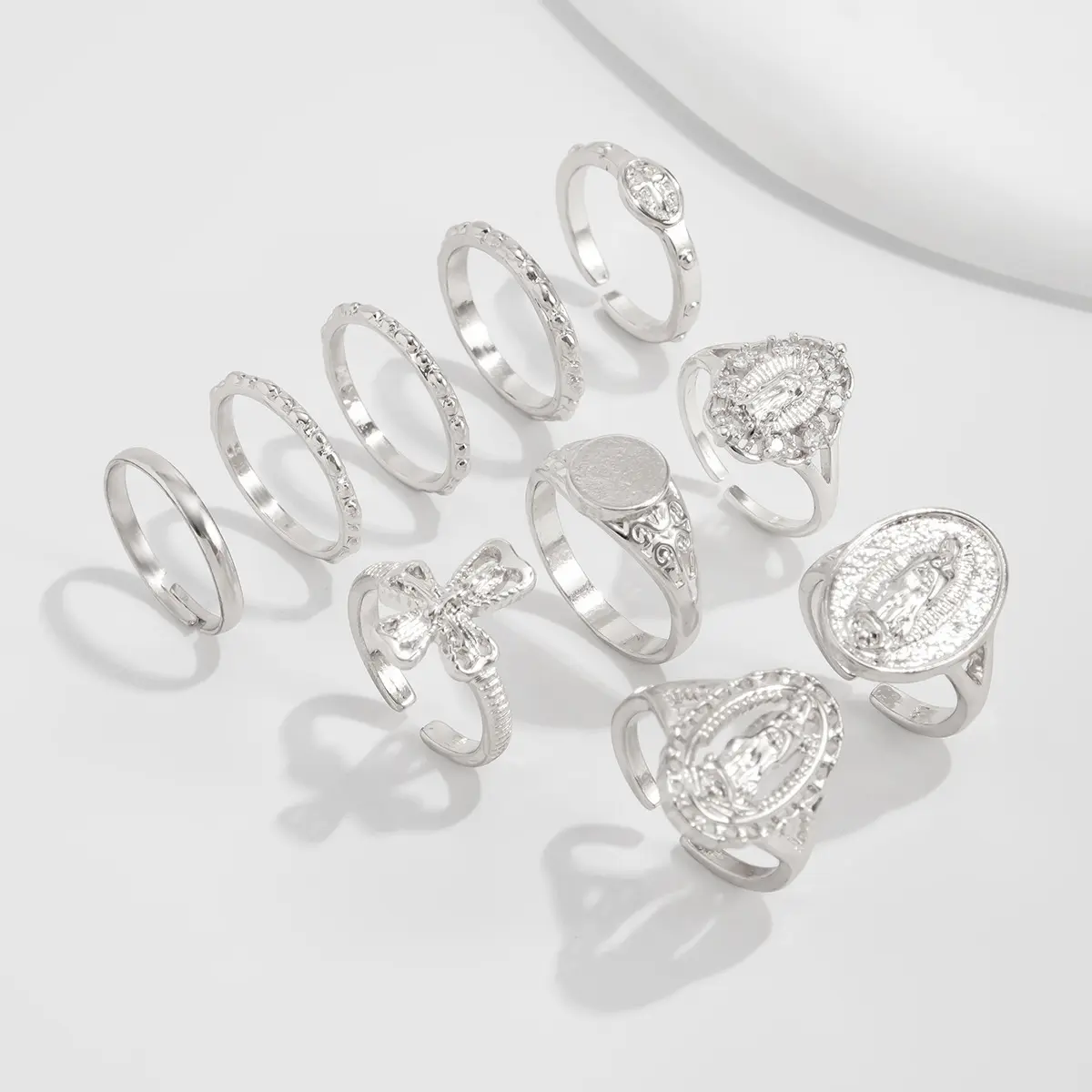 Elevate your everyday and occasion looks with this curated 9-piece gold religious ring set, the ultimate bohemian-chic accessory for modern women who love to layer and express their faith through style. Crafted from premium, hypoallergenic gold-plated alloy, this set delivers a luxurious, long-lasting finish that resists fading and tarnishing, perfect for daily wear and endless stacking combinations.