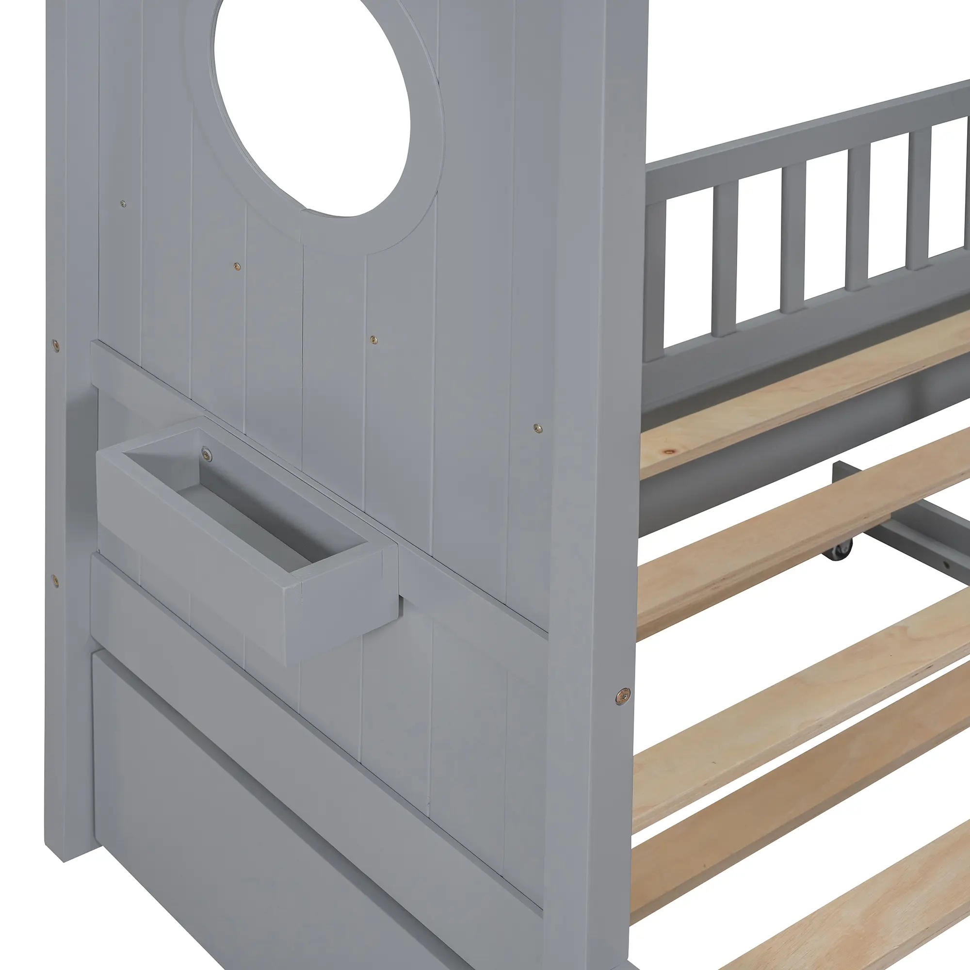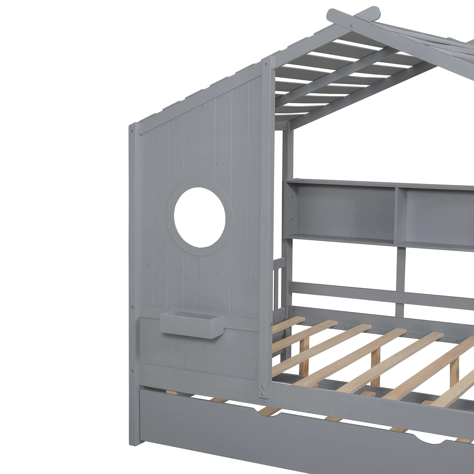 Semi-enclosed sleeping environment with trundle bed: The full size house bed with trundle features a semi-enclosed structure that creates a peaceful retreat without compromising airflow. The pull-out trundle bed offers an extra sleep surface for sleepovers or cozy companionship.