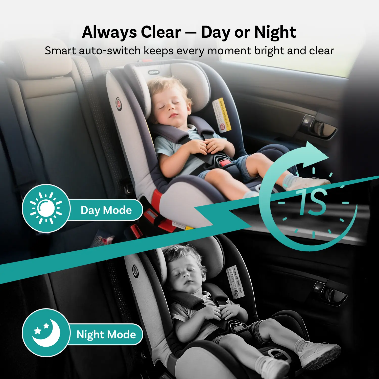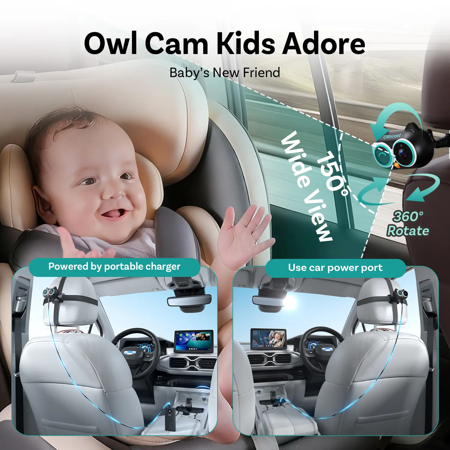 ·【1080P Clear No-Glow Night Vision — Safe for Baby’s Eyes】When low light is detected, the car baby camera automatically switches to night vision, letting you see your baby clearly even in complete darkness. Ottocast’s advanced no-glow infrared technology ensures it’s completely safe and gentle on your baby’s eyes. Plus, its adorable owl-inspired design makes monitoring both fun and comforting for little ones.