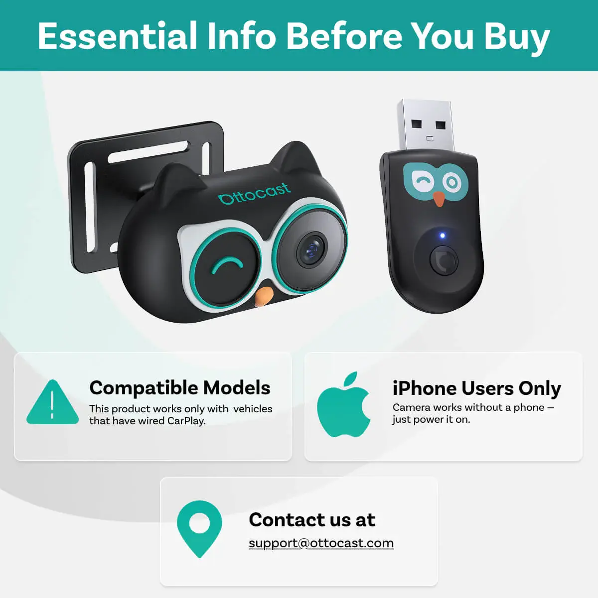 ·【2-Year Quality Assurance and Technical Testing】With over a decade of expertise in CarPlay connectivity, Ottocast stands as a trusted industry leader. We deliver cutting-edge technology backed by a comprehensive 2-year warranty for your peace of mind. For any questions or support, contact us via phone, email, or live chat — our team guarantees a response within 24 hours.