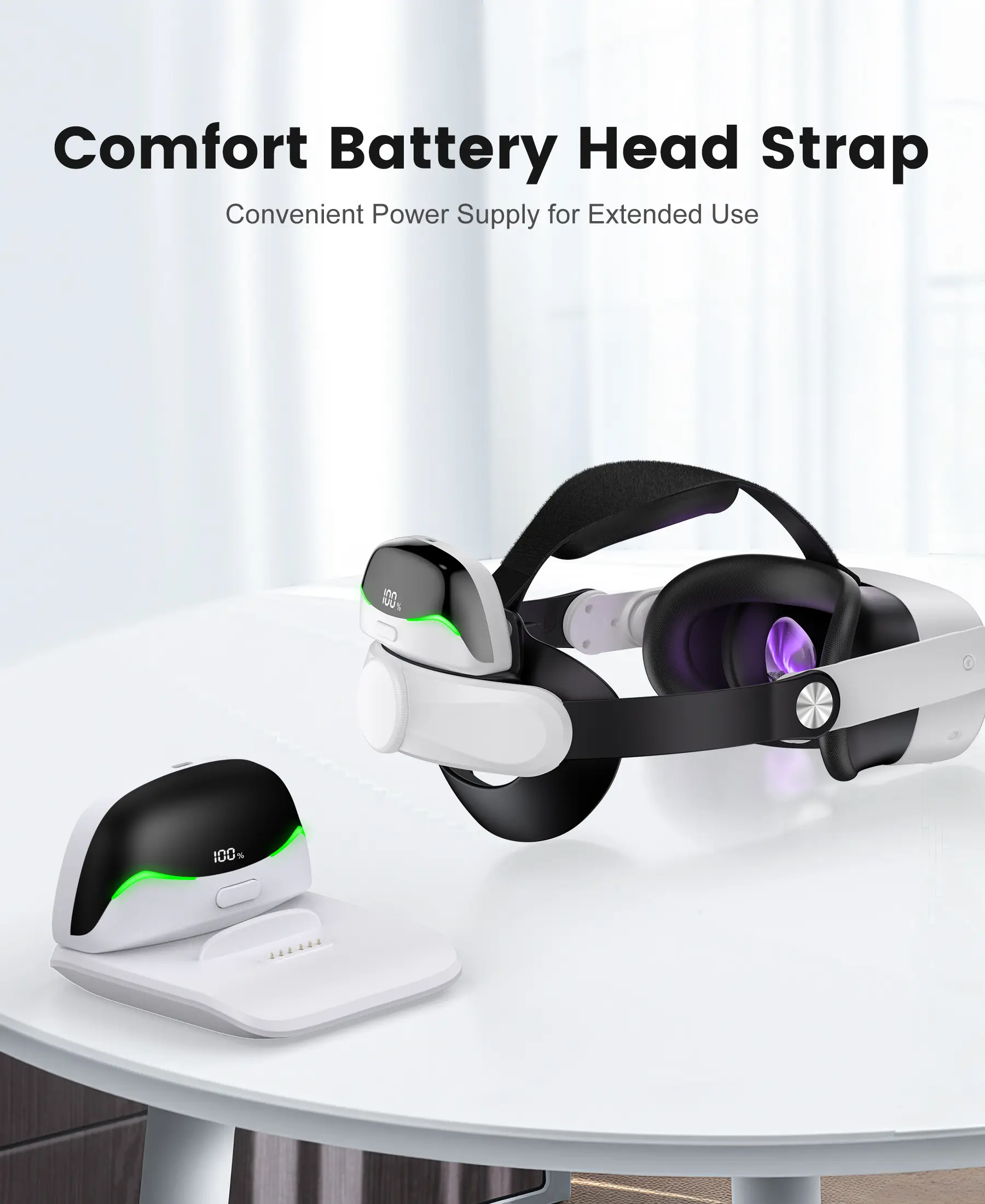 【Extra 6-8 Hours Non-Stop Gaming】 Tired of your head strap for quest 3s/3/2 dying mid-boss fight? Our meta quest 3s head strap packs one charging dock and 2×10,000mAh hot-swappable batteries that deliver 6-8 hours of extra playtime—swap in seconds without removing your headset, so your vr headstrap never kills the immersion when it matters most.