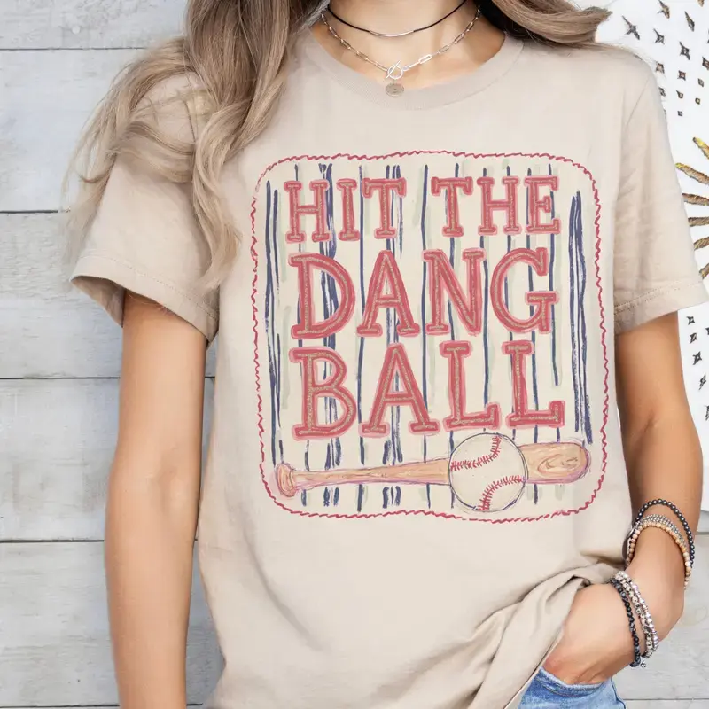 Vintage Baseball Tee Retro Play Ball Stripe Tshirt Hit the Dang Ball T-Shirt Baseball Mom Sports Top Casual Womenswear Crewneck