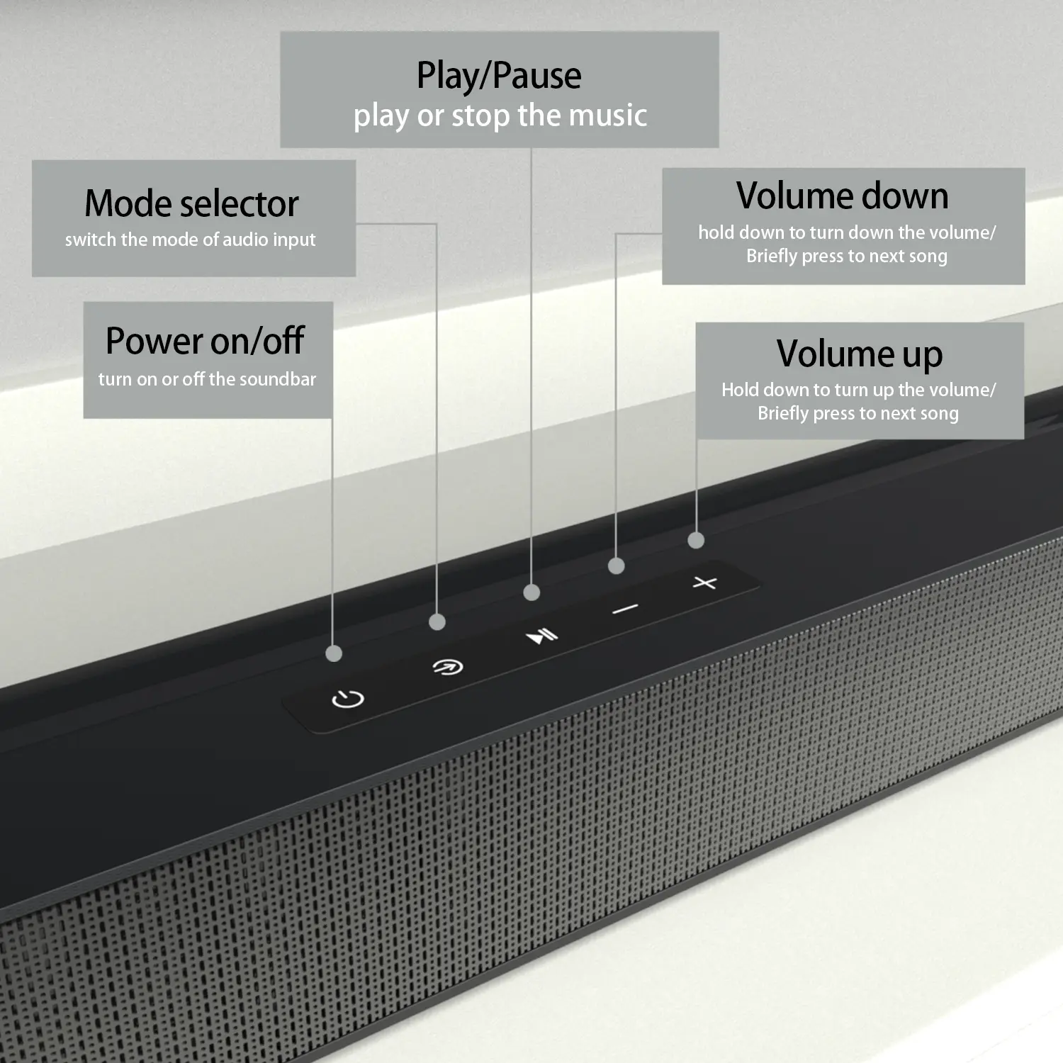 Wireless Sound Bar for Smart TV, Surround Soundbar with Bluetooth/RCA/AUX Connect, Volume Control, 2in 1 Detachable Soundbar for TV/PC/Gaming/Projectors