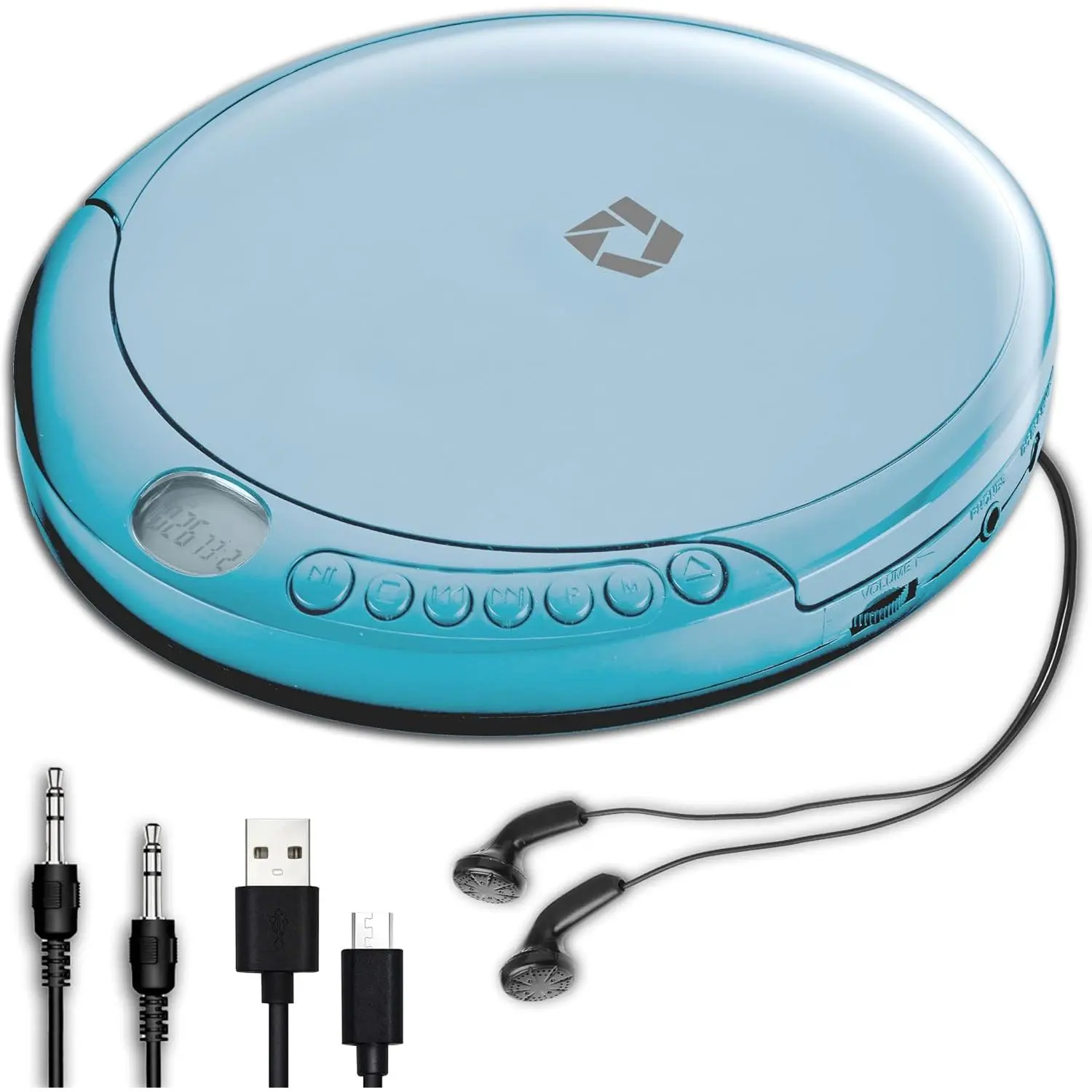 Package Includes: Portable CD Player, Stereo Earbuds, Micro-USB Cable and Aux in Cable.(Speaker Not included)