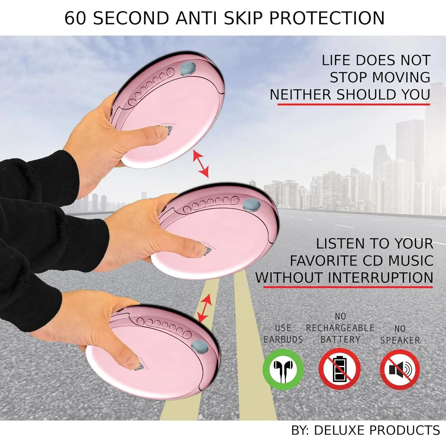 Music On The Go - With the 60 Second Anti Skip protection CD Walkman.Do not let your everyday life interrupt your music!Take it with you on the bus!or While you take a walk outside (Please allow music to play for at least 60 seconds before moving for best performance)