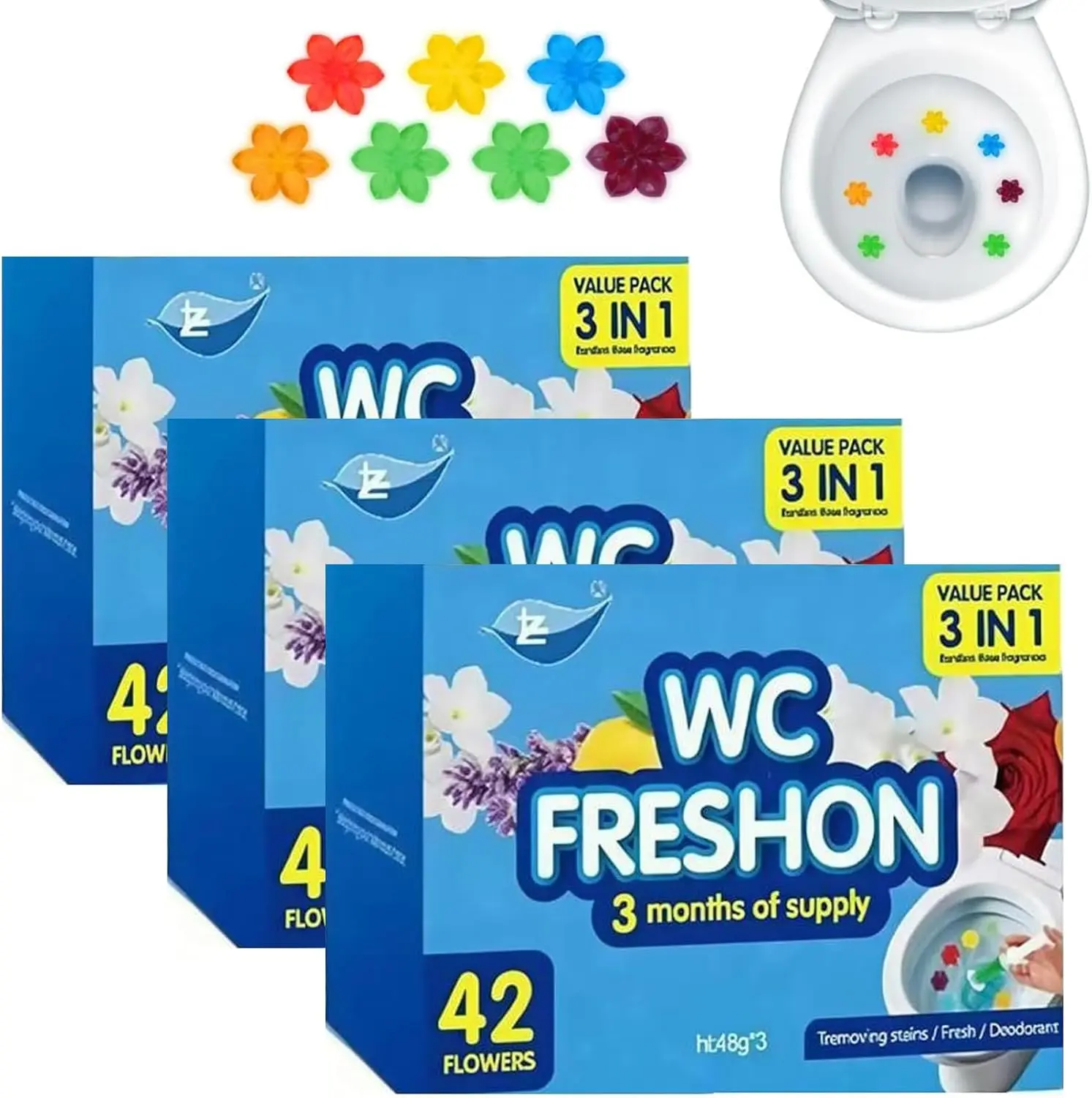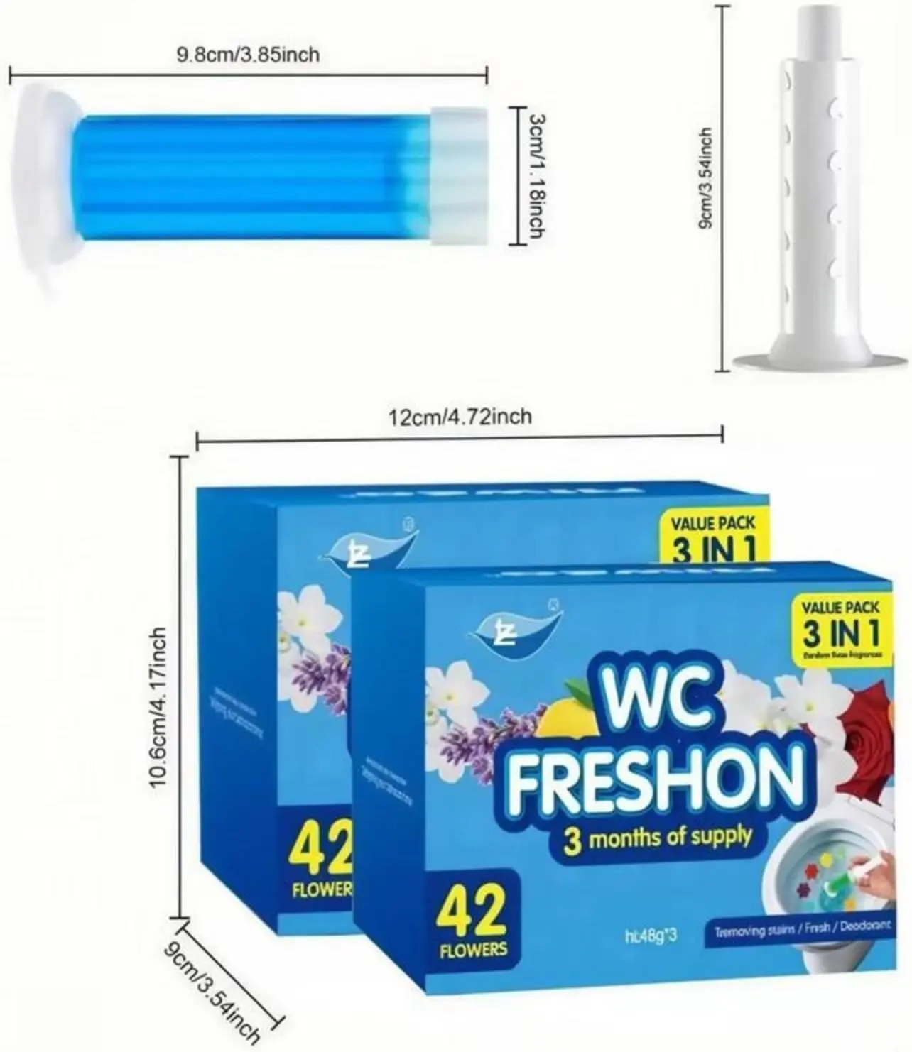 Toilet Bowl Gel Stamp, 42 Flower Scent Stamps, Toilet Cleaner Bowl Gel Stamp, for Three Month ( 3 in 1 Value Pack)