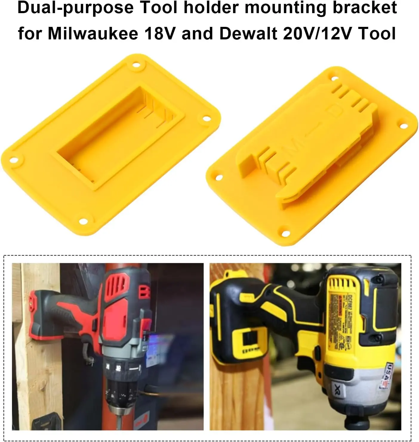 This wall mount tool holder and battery storage rack is designed specifically for 20V power tools. It offers a convenient solution for organizing and storing your tools and batteries. The yellow color adds a touch of vibrancy to your workspace. Ideal for workshops and garages, it keeps your tools within easy reach.