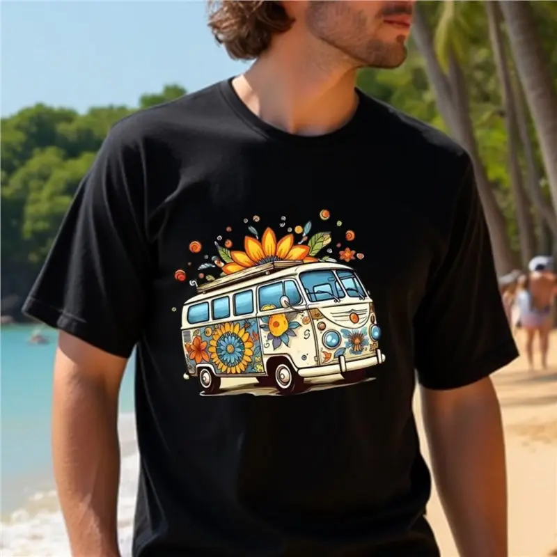 ·Comfortable and Breathable: This short-sleeve T-shirt is designed for everyday and party wear. It features a vintage bus print that adds a unique touch to your casual wardrobe. 🌞