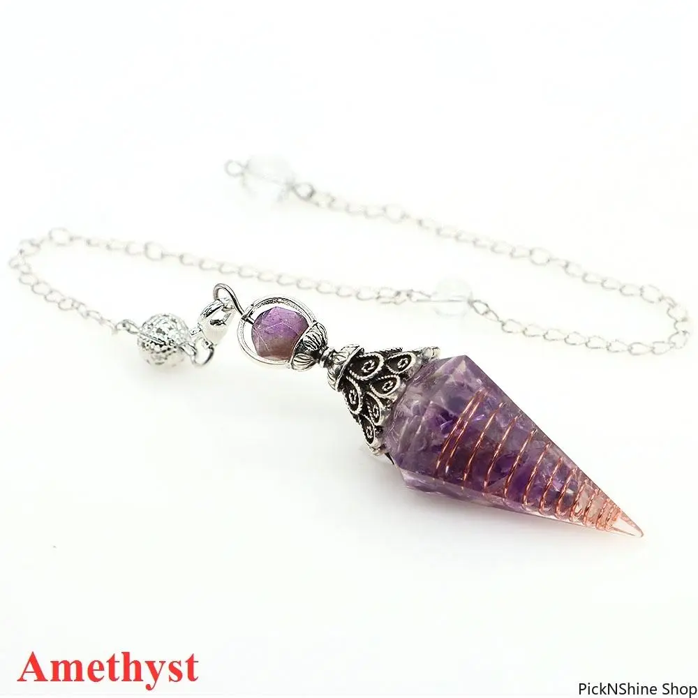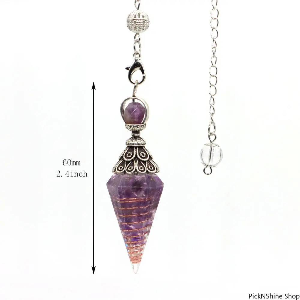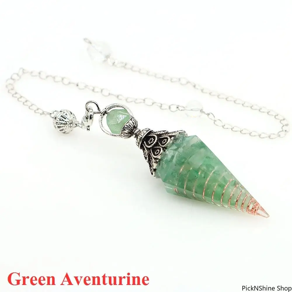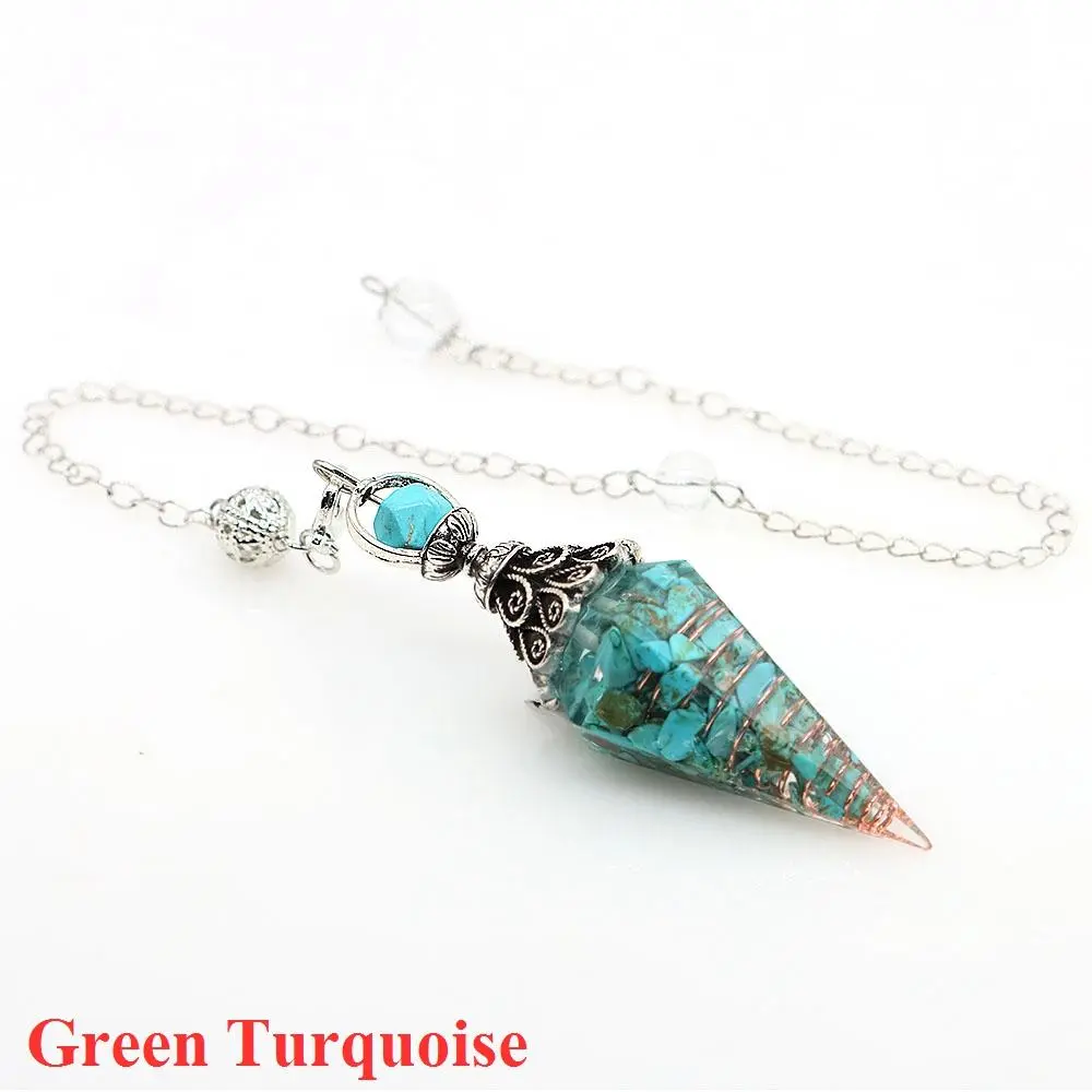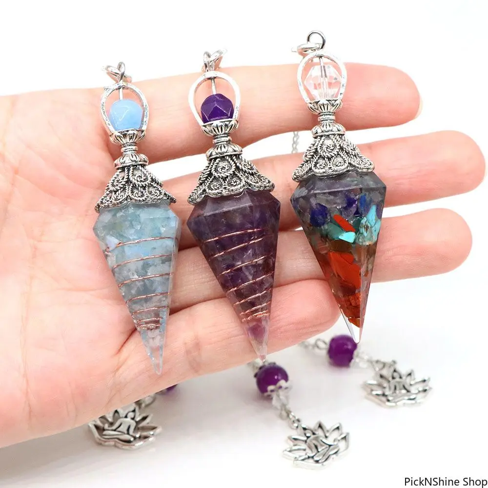 Natural Crystal Dowsing Pendulum Reiki Stone Chips Orgone Pendulums Hexagonal Pointed Reisin Spiritual Pendulo for Divination