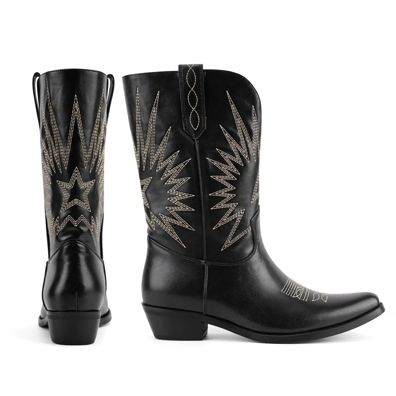 Star Embroidery Design: Eye-catching star stitch patterns along the shaft and vamp deliver a playful yet classic Western vibe.