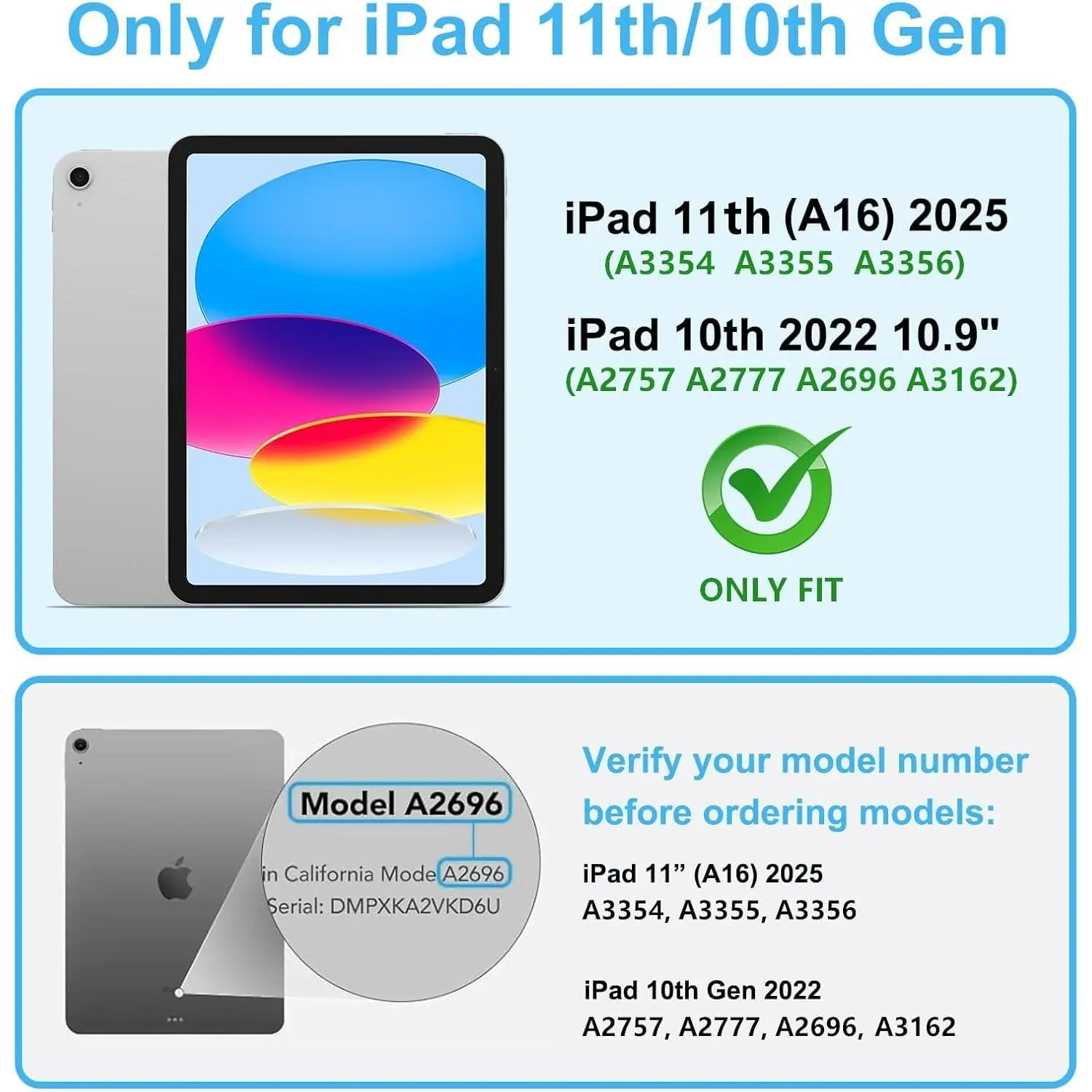 Only designed for iPad A16 11th Generation 2025 11 Inch (Model Number: A3354 A3355 A3356) / iPad 10th Generation 10.9 Inch 2022 (Model Number: A2696 A2757 A2777).