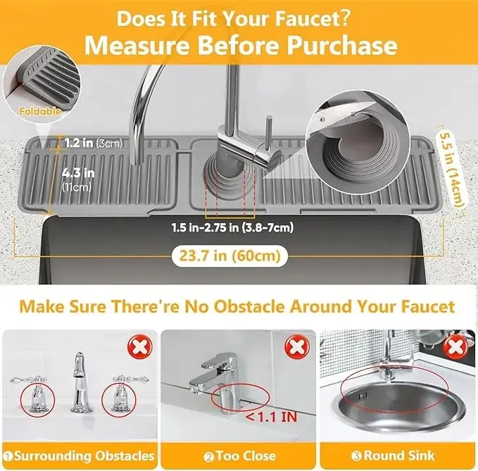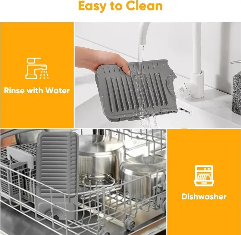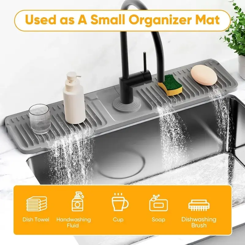 Kitchen Sink Faucet Mat Elevate your kitchen sink experience with our Silicone Folding Splash Guard. This mat features a button lock design for secure use. It's a practical accessory that protects your sink from water splashes. Perfect for any kitchen setup, it adds functionality without clutter. Key Features: Silicone Material: Durable and flexible. Folding Design: Easy storage when not in use. Button Lock: Ensures a firm grip on the faucet. Draining Mat: Helps in quick drying of the mat. Enhance Your Kitchen: This sink faucet protector is an essential addition. It complements your kitchen decor while providing necessary protection. Ideal for busy households, it keeps your sink area tidy and organized. Upgrade your kitchen accessories today!