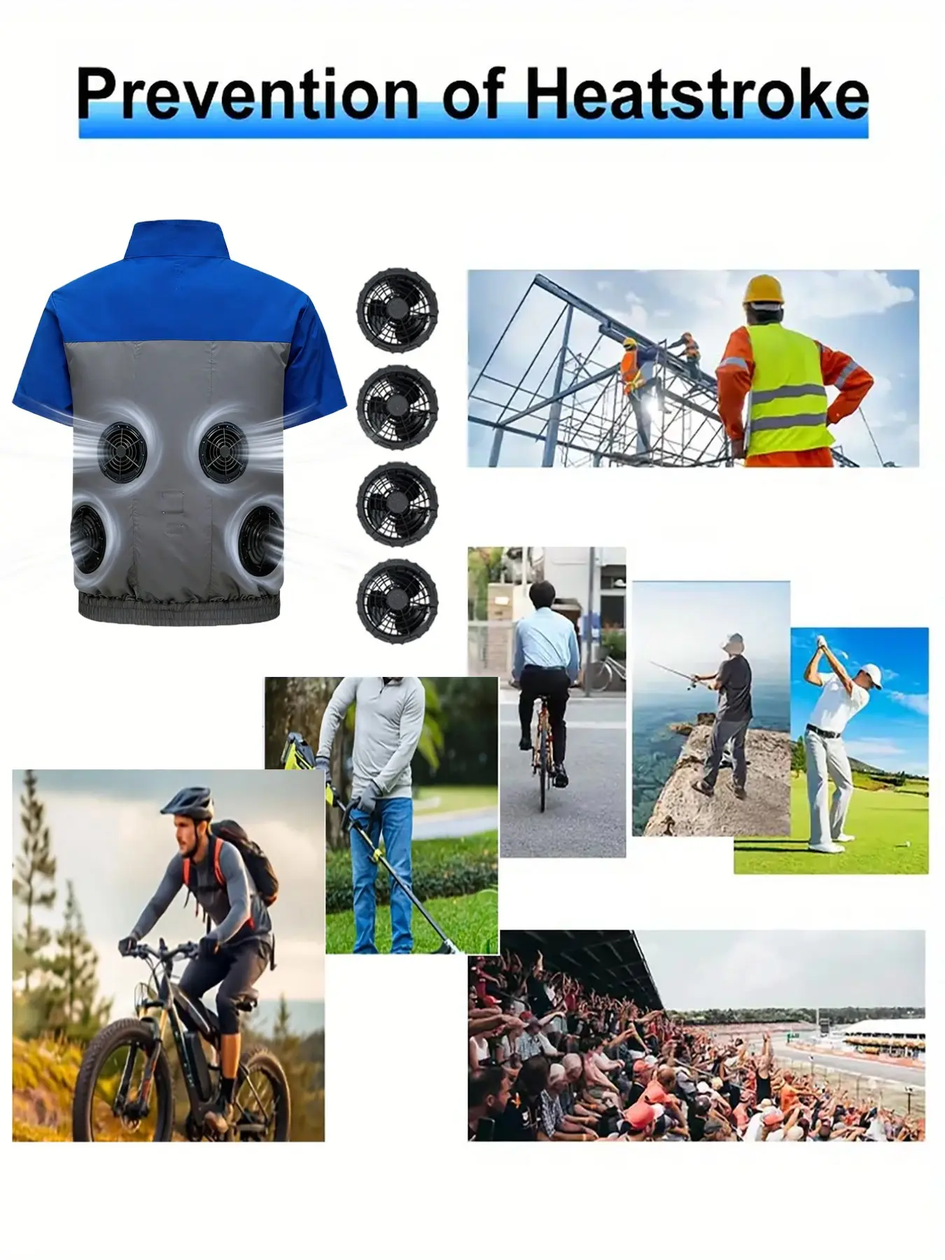 4 Fan Short Sleeve Work Vest, Air Conditioning Shirt, Unisex, Outdoor, Fishing, Camping, Indoor Use, No Battery Included