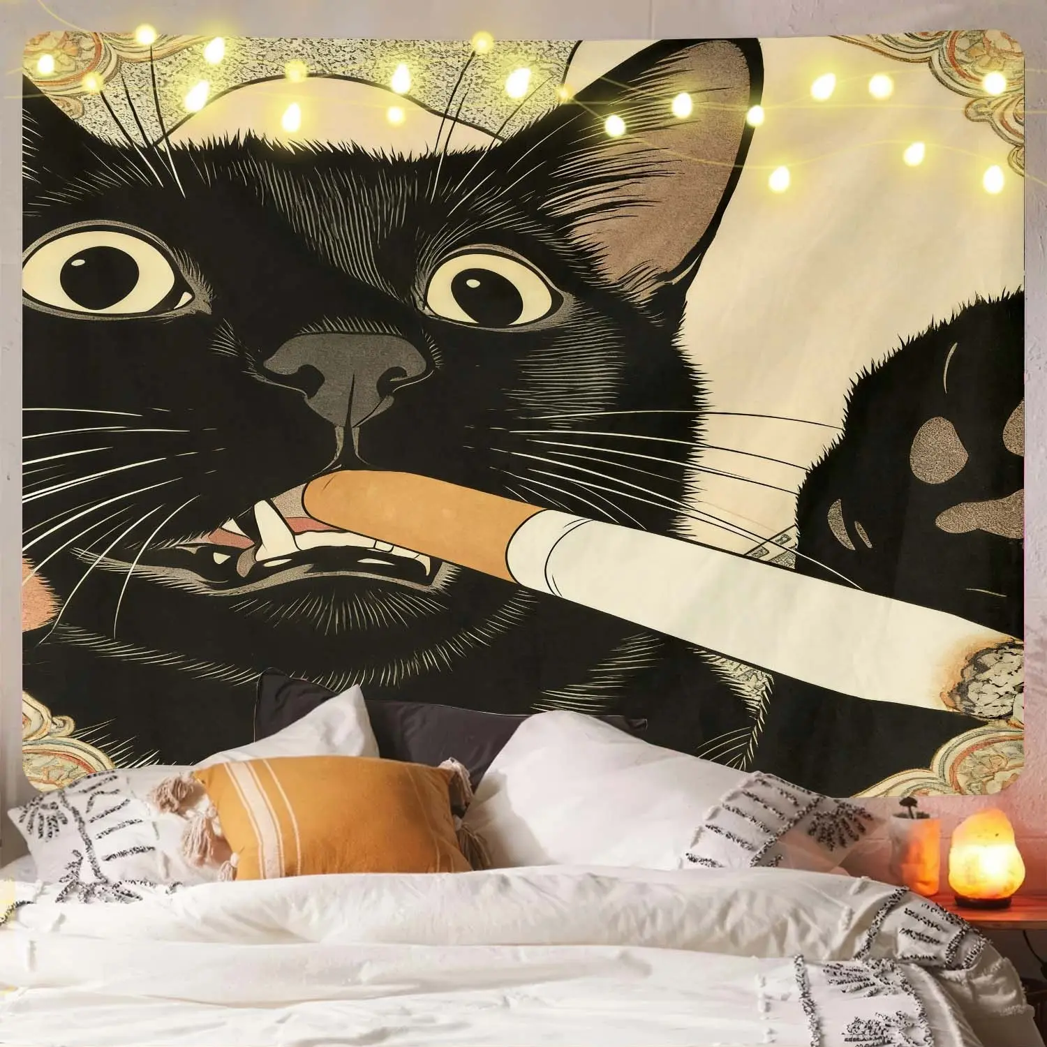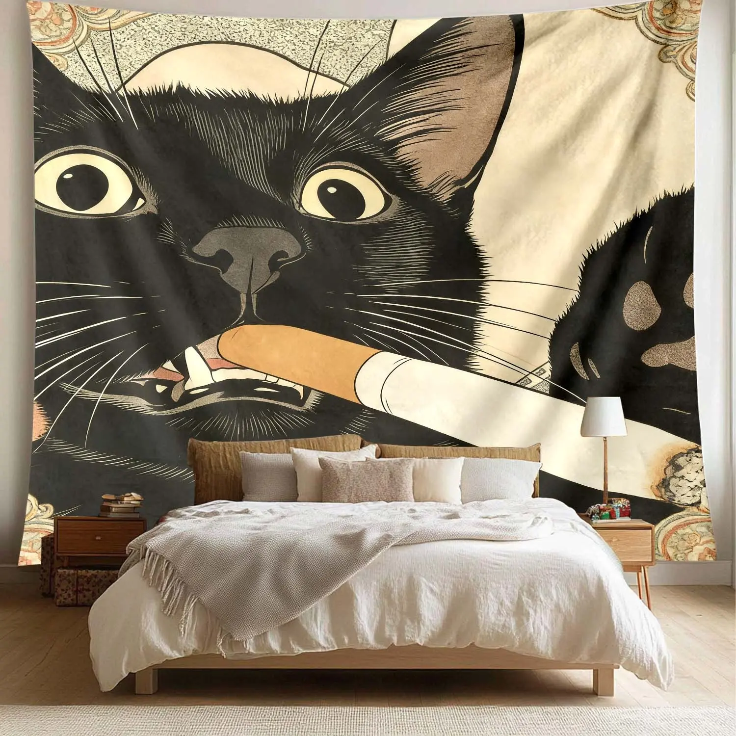 Distinctive Cat Tapestry, Humorous Illustration of a Smoking Cat, Large Artistic Wall Hanging, Decorative Background Cloth, Perfect for Living Room or Bedroom, 1 pc
