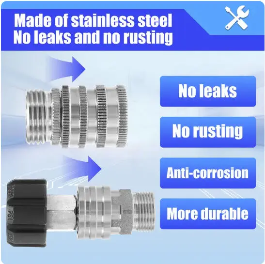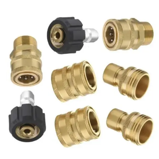 ·8-pack universal Pressure Washer Adapter Set, 4 kinds of couplers includes: Metric M22-14 swivel female + 3/8’’ plug, 3/8’’ quick disconnect + M22 male, 3/4’’ female + 1/2’’ quick connect, 1/2’’ plug+ 3/4’’ male.