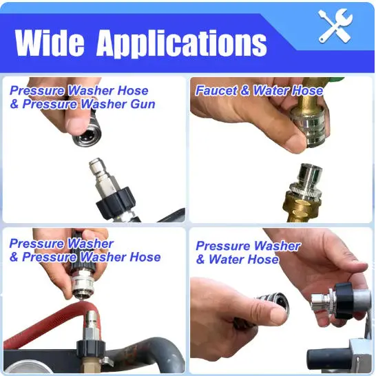 ·The other two Quick Connect Kits converts 3/4’’ threads to quick release fittings, connecting all 3/4" standard garden hose to water inlet of power washer pump.