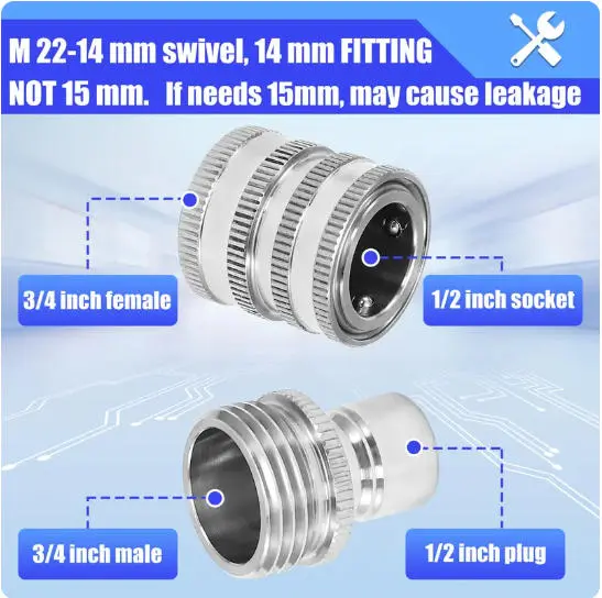 ·ATTENTION: M22 14 mm swivel fitting has 14 mm inside diameter, NOT 15mm!!!