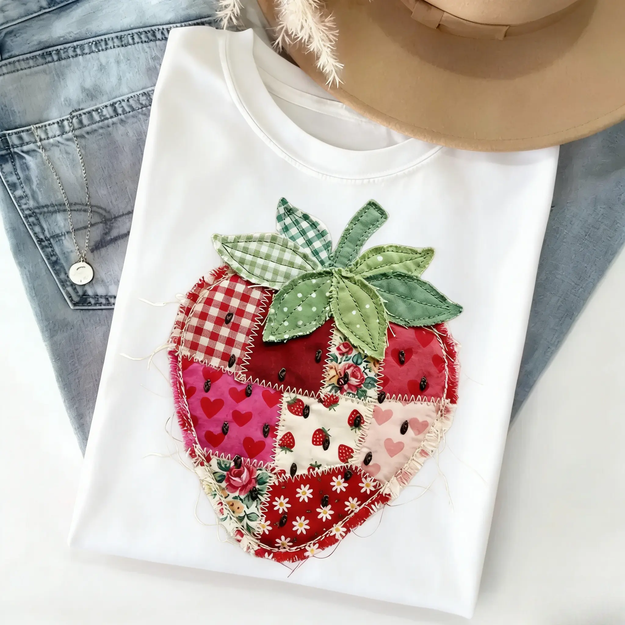 Comfort Colors PRINTED Strawberry T-Shirt, Patchwork Quilted Farmhouse Berry Tee, Rustic Gingham Floral Cottagecore Aesthetic, Vintage Tee - TrendWear USA
