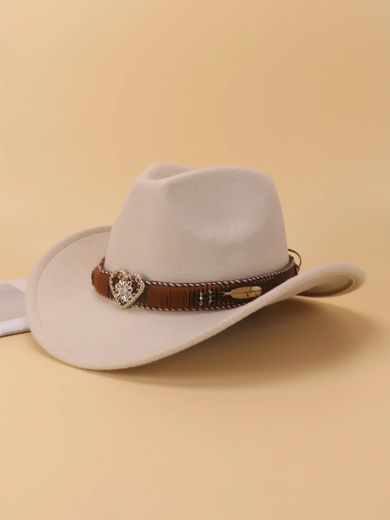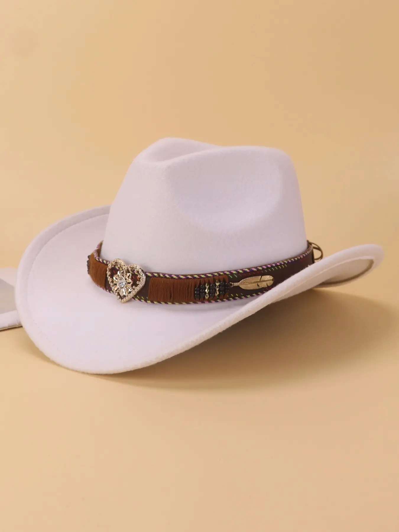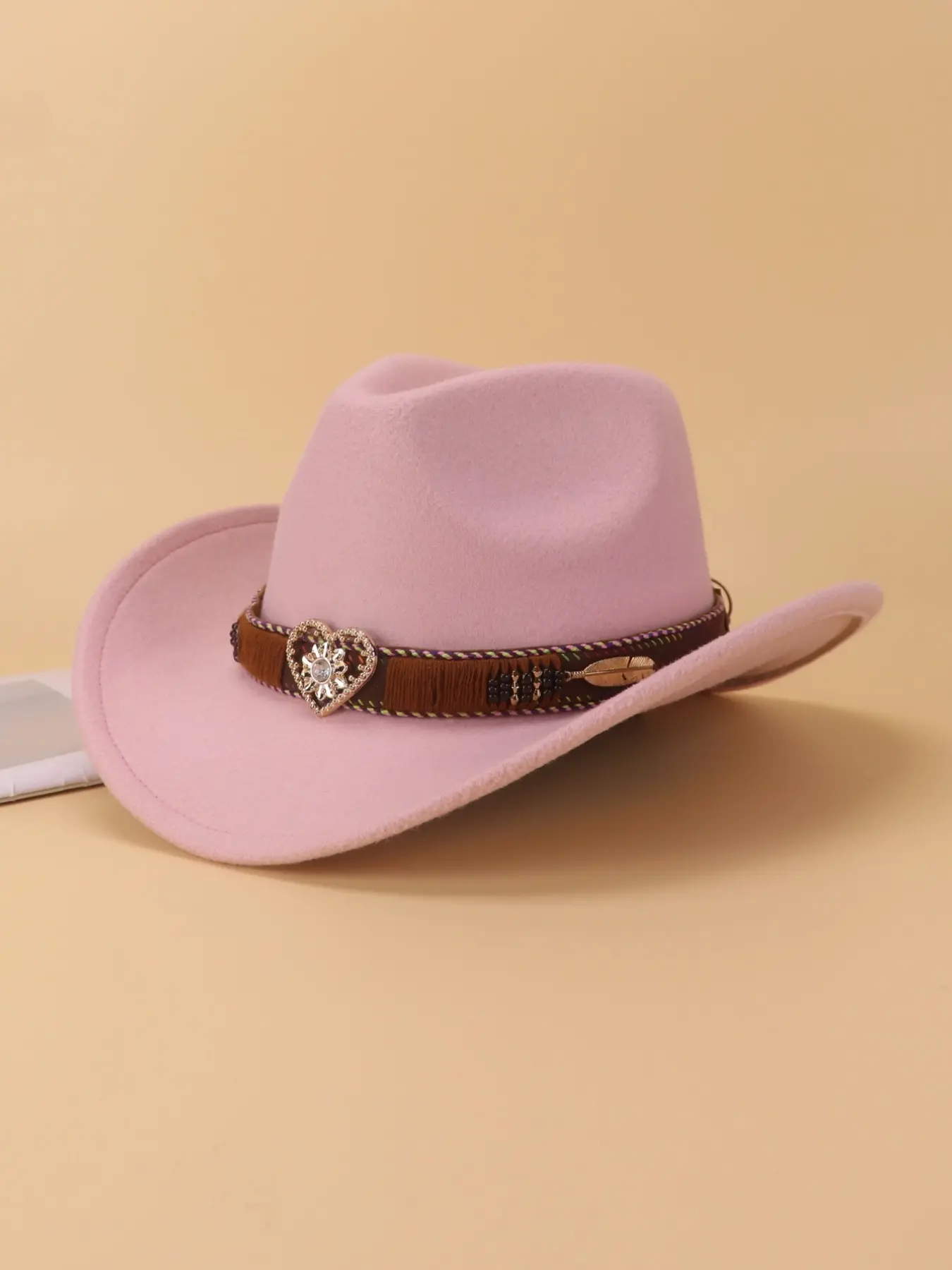 1PCS Unisex Rhinestone Heart Decorative Western Cowboy Hat, Vintage Polyester Style, Perfect for Western Theme Parties, Casual Wear, Daily Use