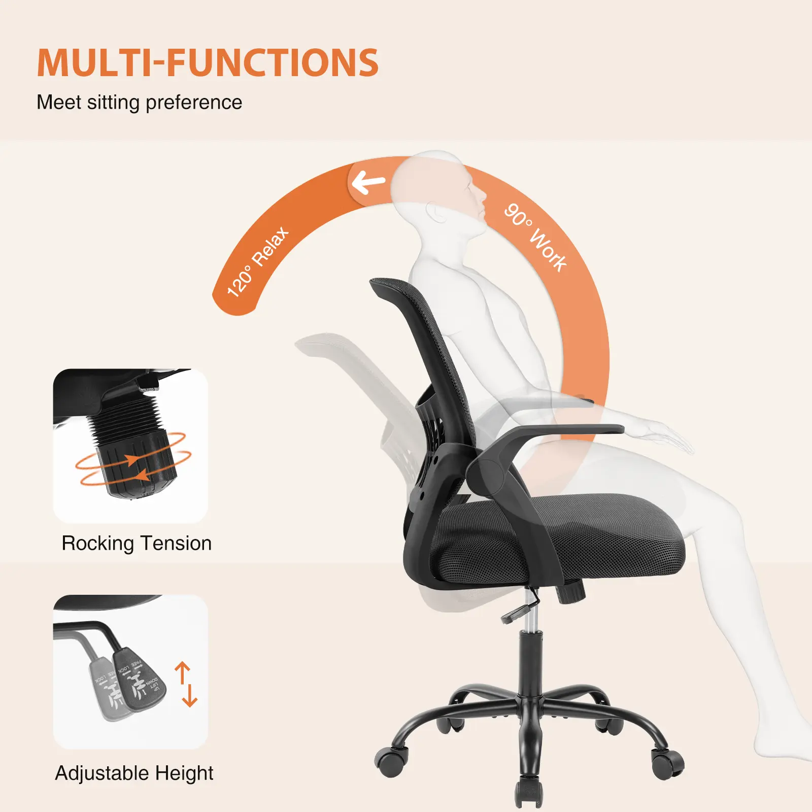 ·【Ergonomic Backrest】 the overall design of this office chair is ergonomic, the backrest and lumbar support fit the natural curve of your lower back, let your body and mesh chair perfectly fit, and take the spinal pain away from your body. It provides comfortable support, which helps you maintain a relaxed posture during long hours of work.