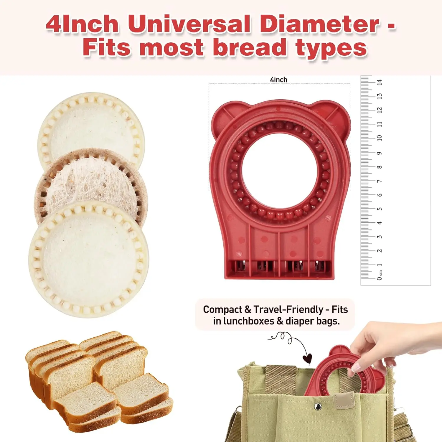 ·Perfect for Bento & Little Hands: 4-inch diameter fits 95% of US sandwich bread (4x4 inches+) and standard lunch containers. Lightweight (0.2 lbs) ergonomic design—kids can use safely under adult supervision. Round shape stays intact in backpacks, loved by both kids and adults.