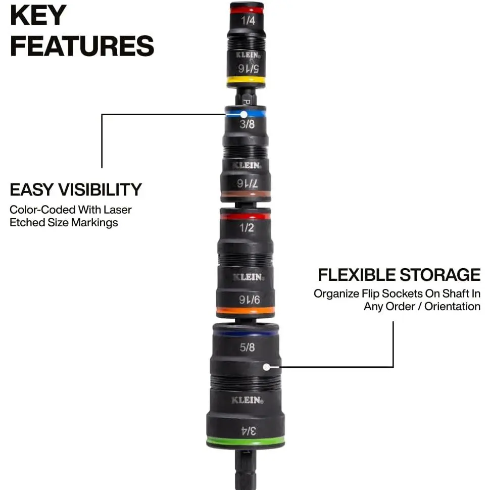 CONVENIENT STORAGE: Arrange flip sockets on the shaft in any order or orientation for flexible storage