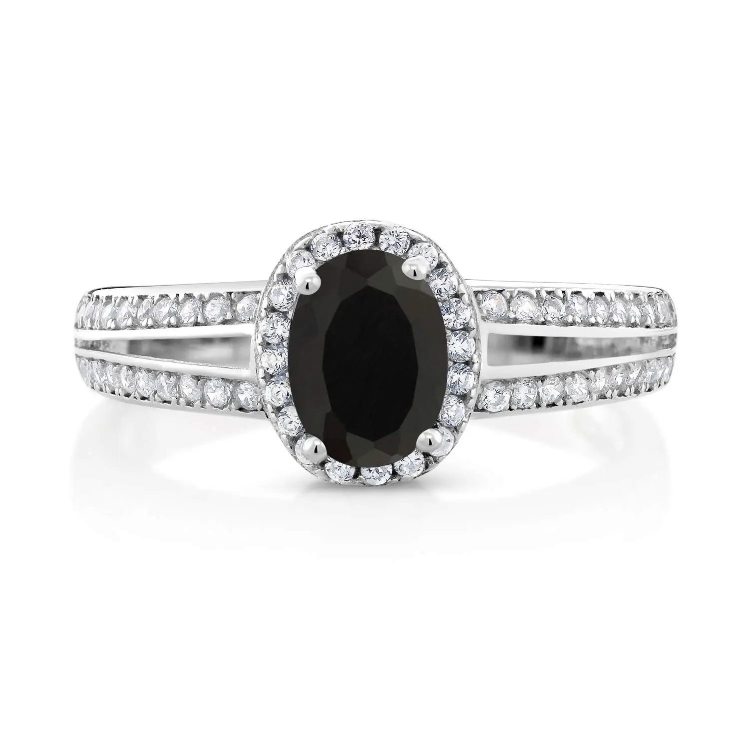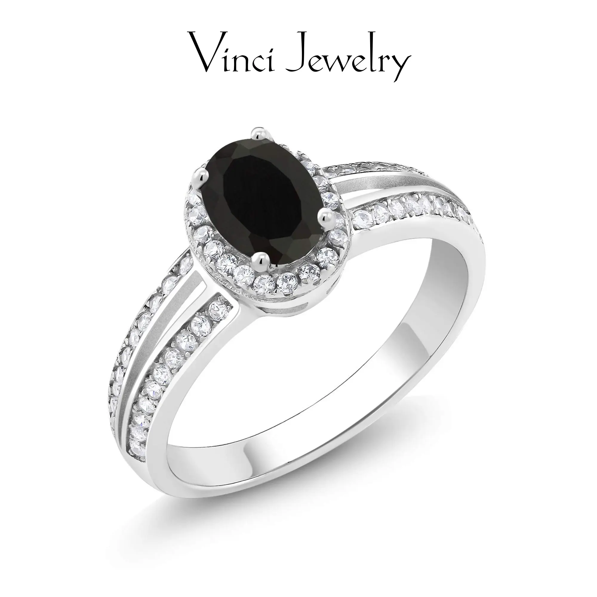925 Sterling Silver Black Oval Gemstone Ring, Halo Split Shank Band, Vintage Elegant Jewelry for Daily Wear, Wedding, Anniversary, Party