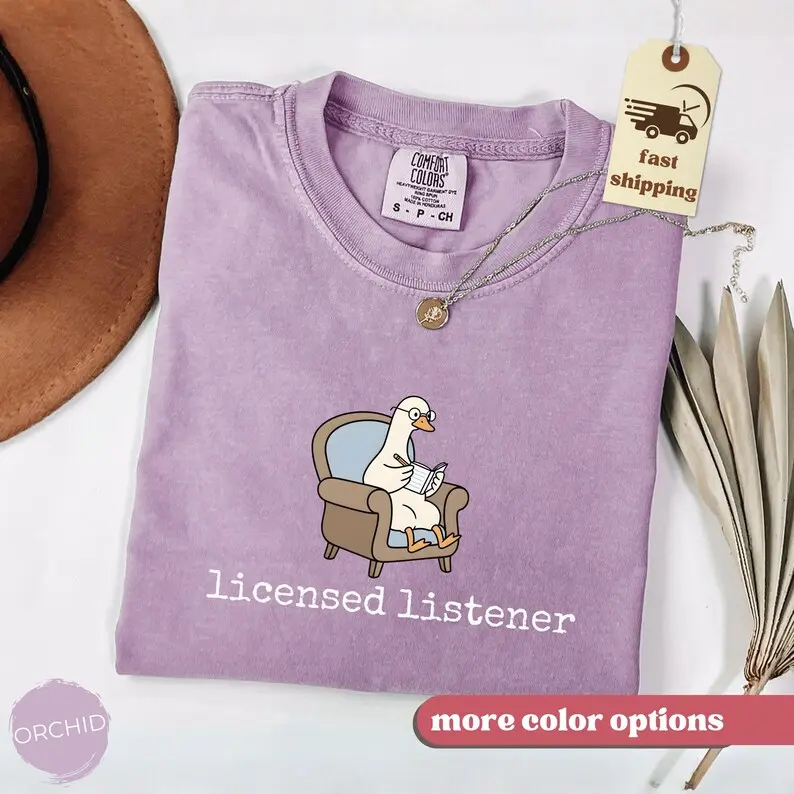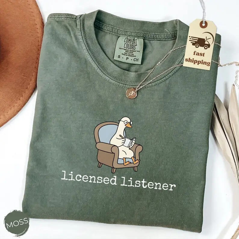 Celebrate the journey of mental health professionals with this Goose Licensed Listener Shirt. Featuring a playful goose design with a humorous “licensed listener” theme, this sweatshirt (or t-shirt/hoodie) is perfect for therapists, counselors, and psychology students.