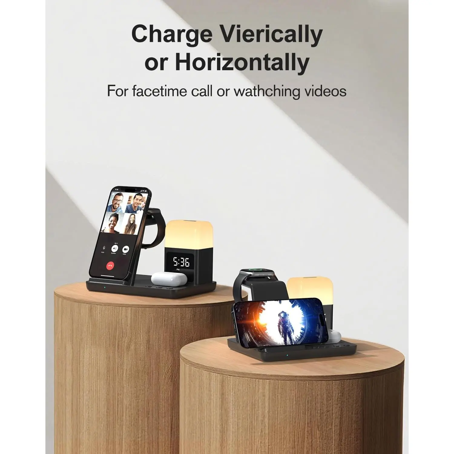 💙[𝐒𝐮𝐩𝐩𝐨𝐫𝐭 𝐕𝐞𝐫𝐭𝐢𝐜𝐚𝐥 𝐚𝐧𝐝 𝐇𝐨𝐫𝐢𝐳𝐨𝐧𝐭𝐚𝐥 𝐂𝐡𝐚𝐫𝐠𝐢𝐧𝐠 𝐟𝐨𝐫 𝐏𝐡𝐨𝐧𝐞]Designed with dual charging coils, wireless charger stand provides vertical and horizontal charging for comfortable viewing to watch videos, and FaceTime while charging