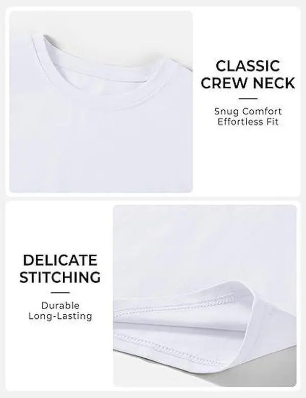 Easy to MatchA classic, versatile basic style, this tee pairs effortlessly with shorts, jeans, overalls, and sweatpants. It’s ideal for any season—cool and airy in summer, and a comfortable base layer under sweaters or jackets in cooler weather.