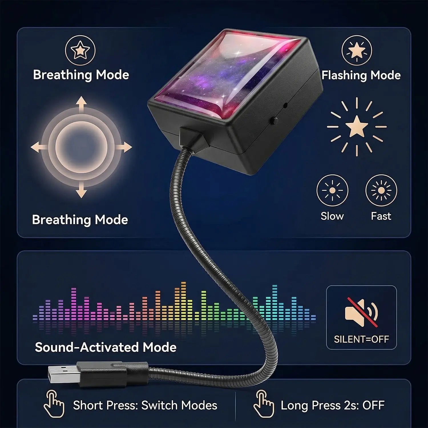 USB Star Projector Night Light, Portable Romantic Interior Car Roof Lights, Adjustable Star Lamp Projector Decorations for Car, Ceiling, Bedroom