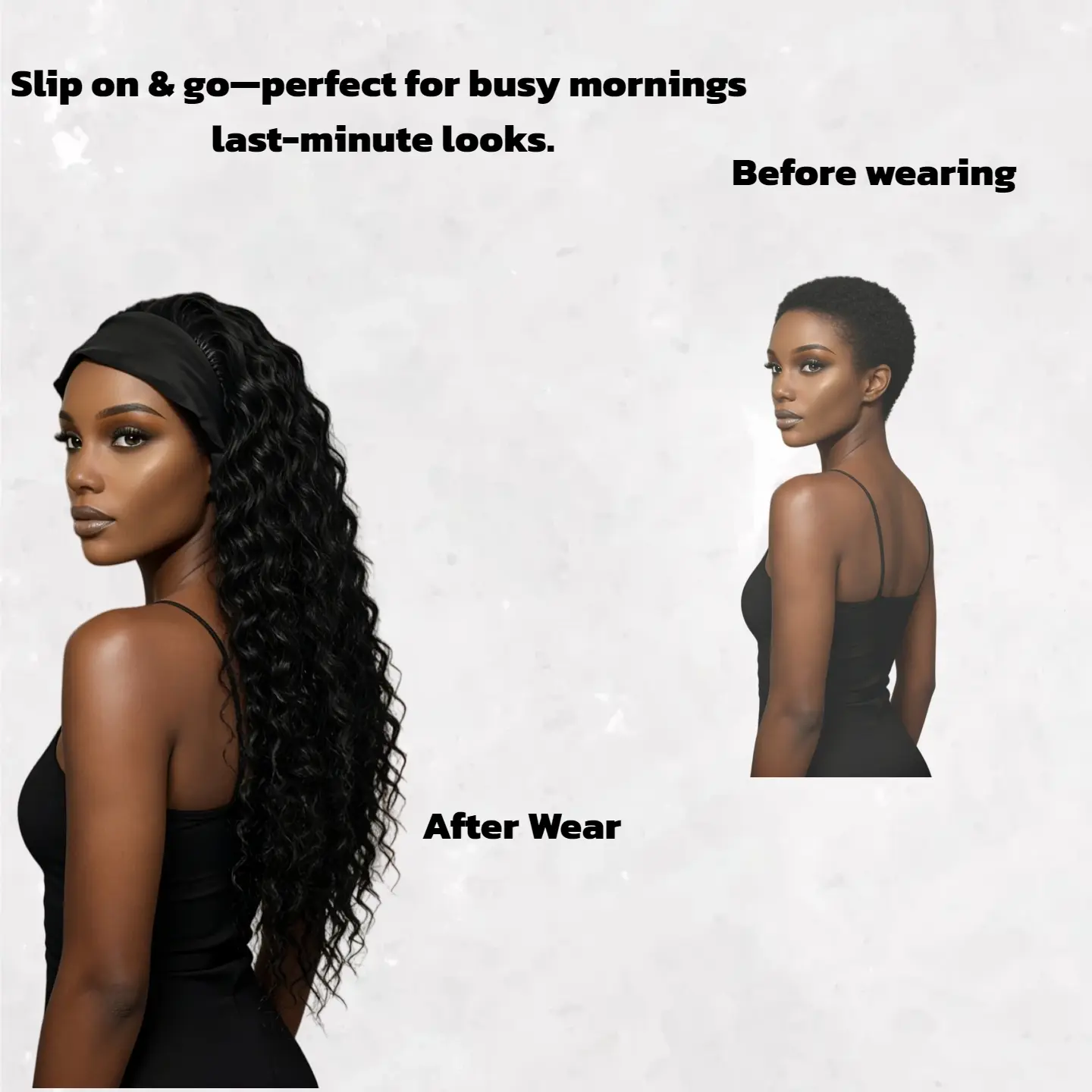 The wig includes a breathable 3D ergonomic inner mesh cap. This design ensures comfort and support, allowing for all-day wear. The cap is tailored to fit snugly, providing a secure and comfortable experience. Ideal for those who prefer a non-lace front headband wig.